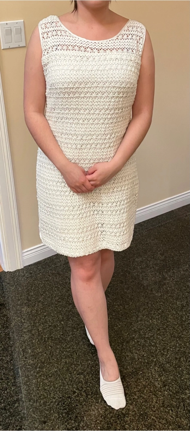 Beautiful white crochet dress. Sleeveless, A-line silhouette. Perfect for summer. Worn once.