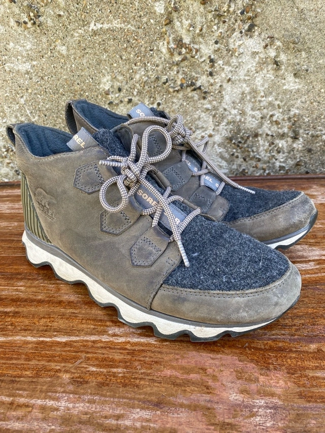 Check out these Sorel Kinetic Impact Boots, perfect for women's size 9.5. They offer both style and comfort for everyday wear and have been worn. Brand: Sorel, Style: Kinetic Impact, Size: Women's 9.5. Cash accepted.