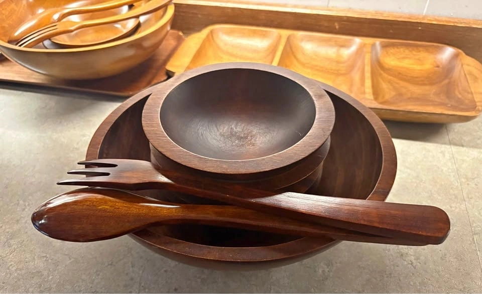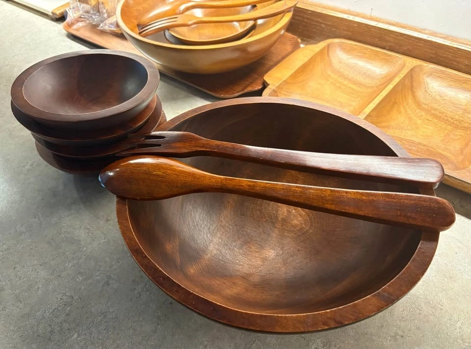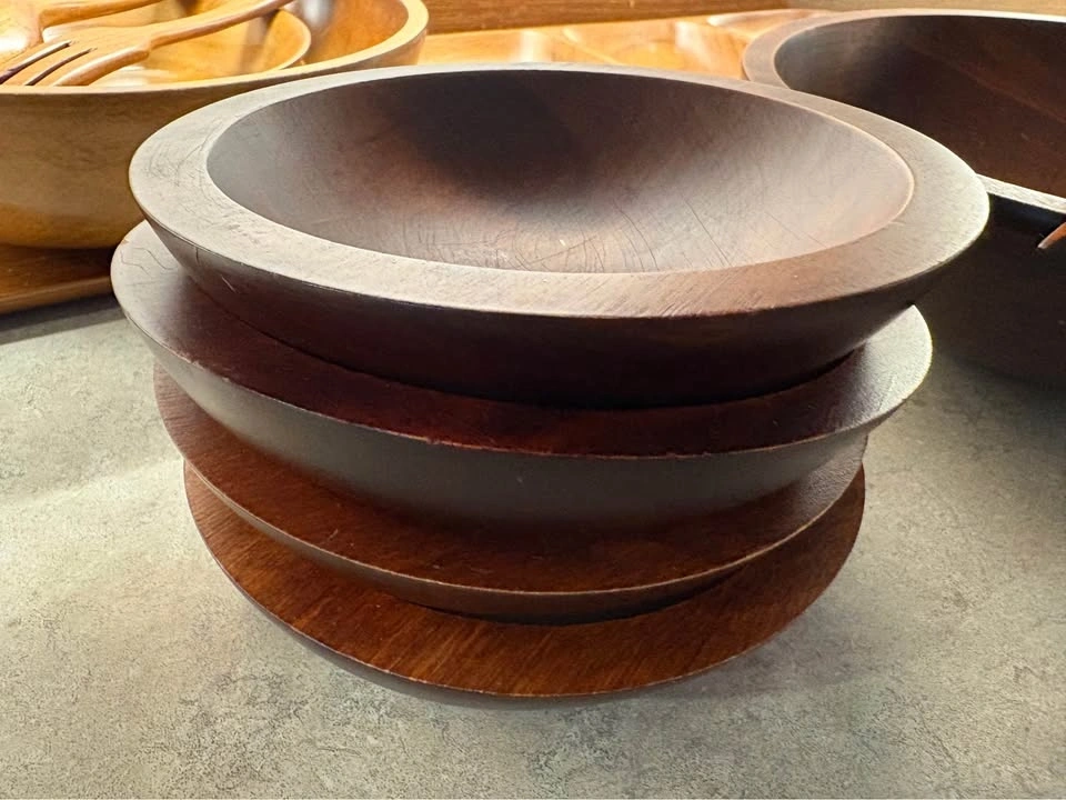 Vintage 1960s BARIBOCRAFT Wooden Salad Bowls Set