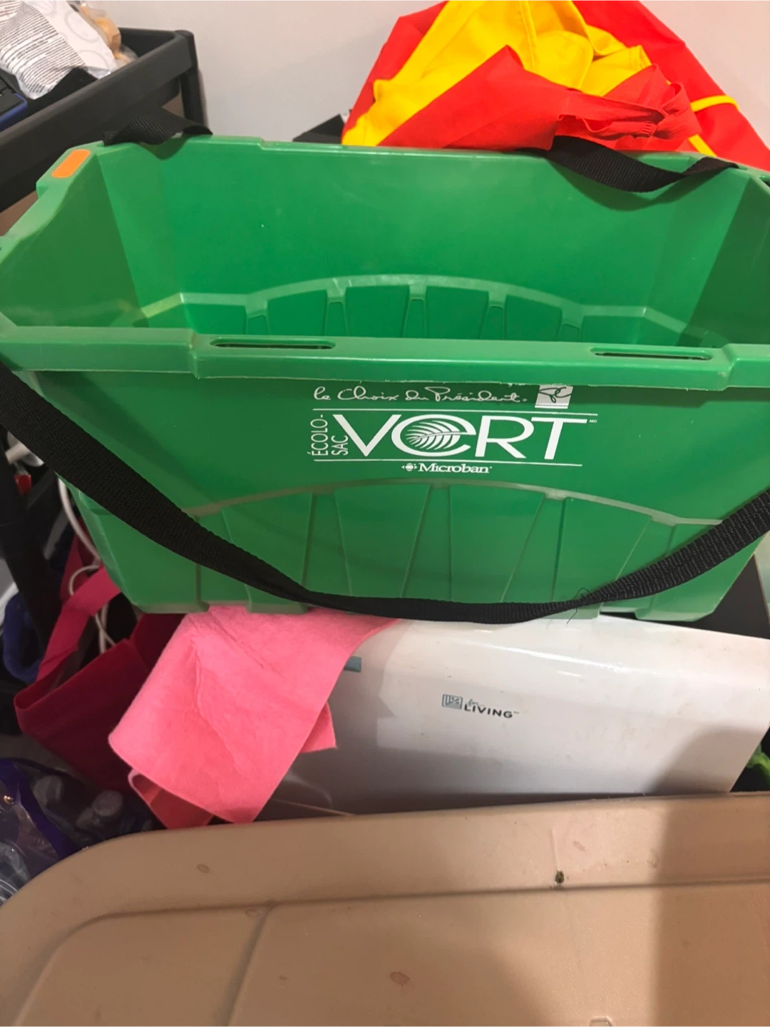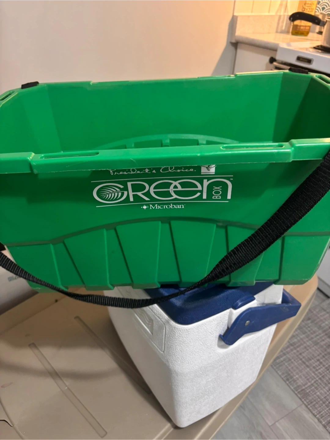 This is a green garden tote bag. It features a durable design and a convenient carrying strap. The bag also has Microban protection for added hygiene.