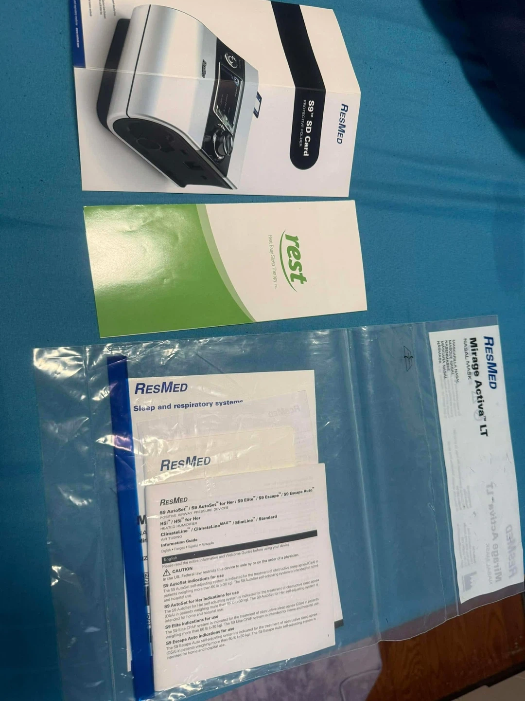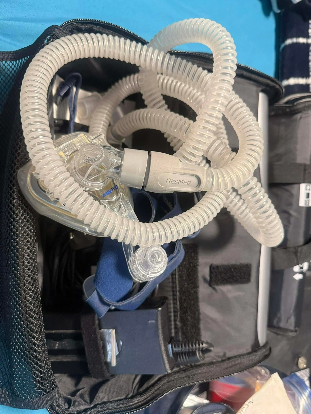 This ResMed S9 AutoSet CPAP machine comes with a travel bag and mask. This is a sleep and respiratory system device.