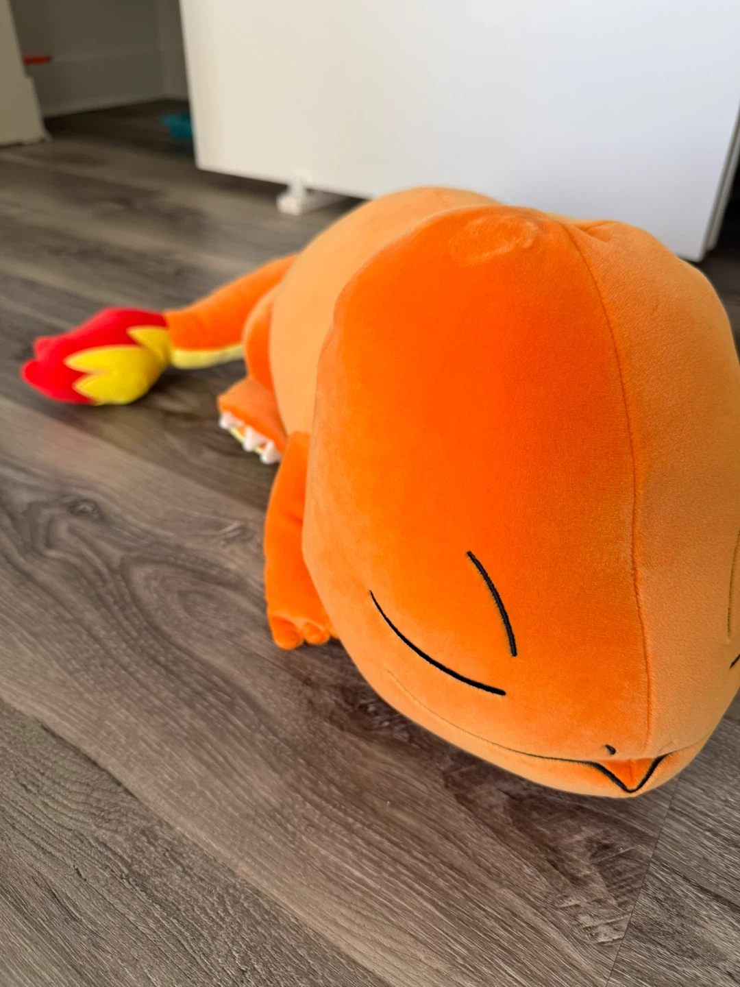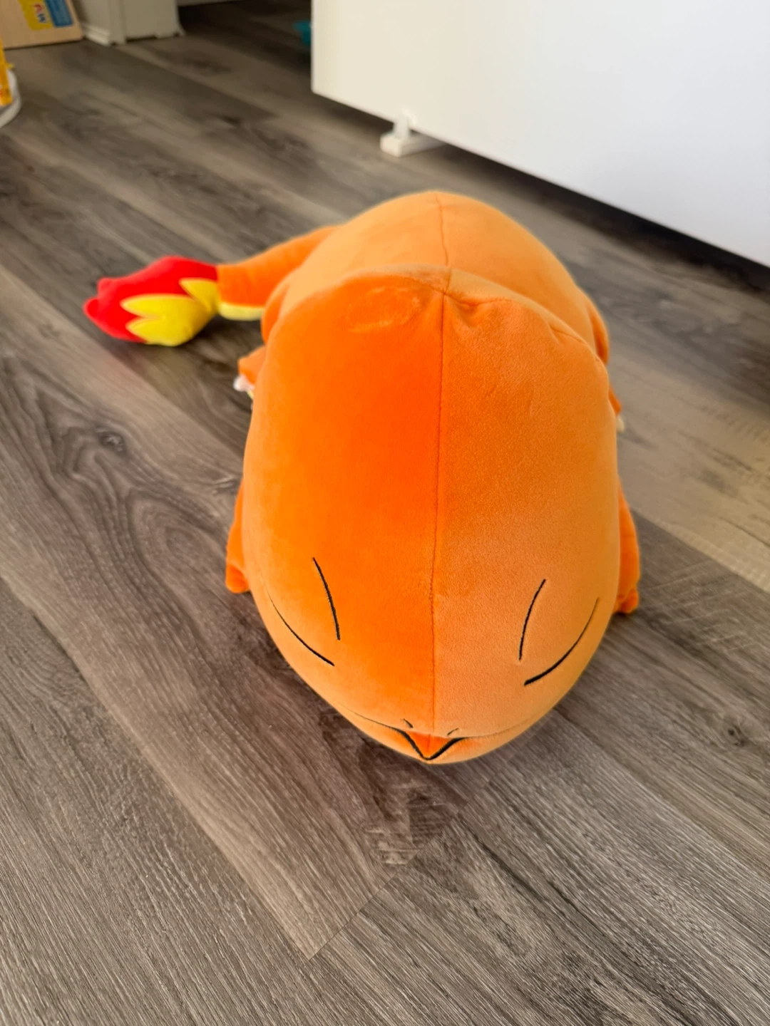 This is a soft orange Charmander plush toy. It's made by Pokémon and dated 2025. This plush would be a fun buddy for any Pokémon fan!