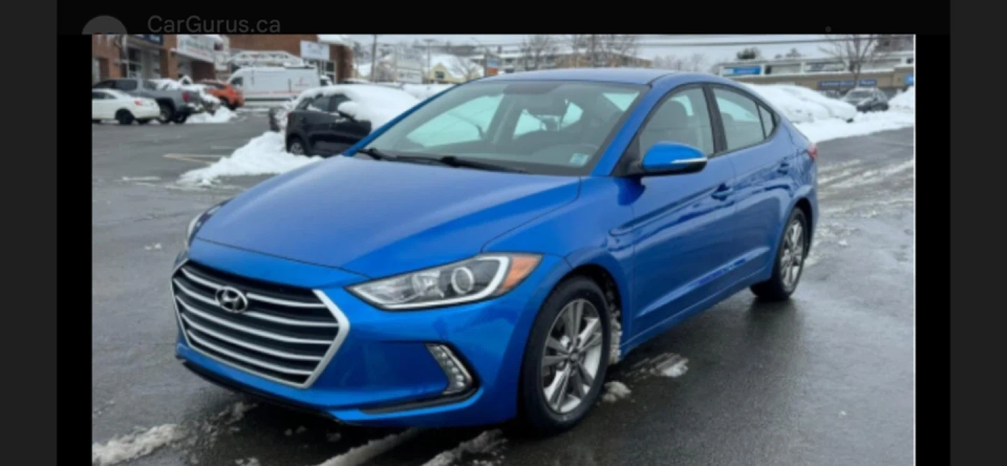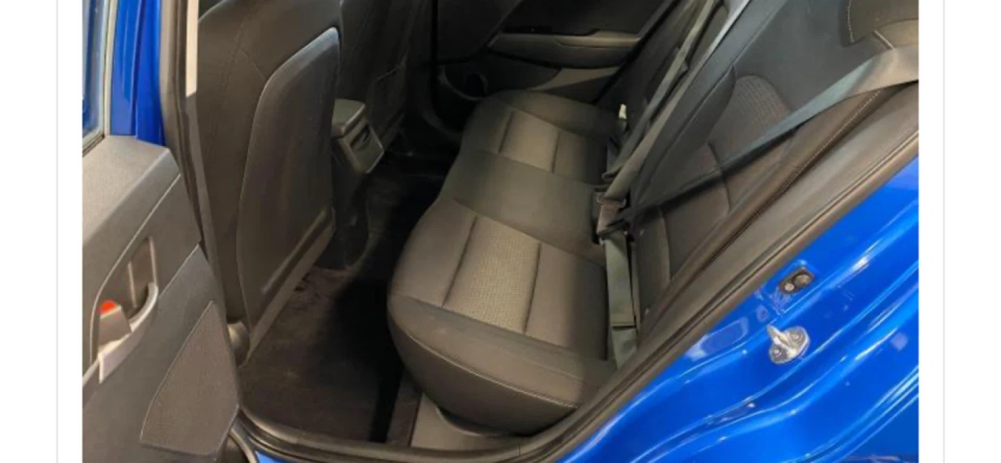 This is a blue Hyundai Elantra sedan. It features a clean interior with comfortable seating. Great for daily commutes!