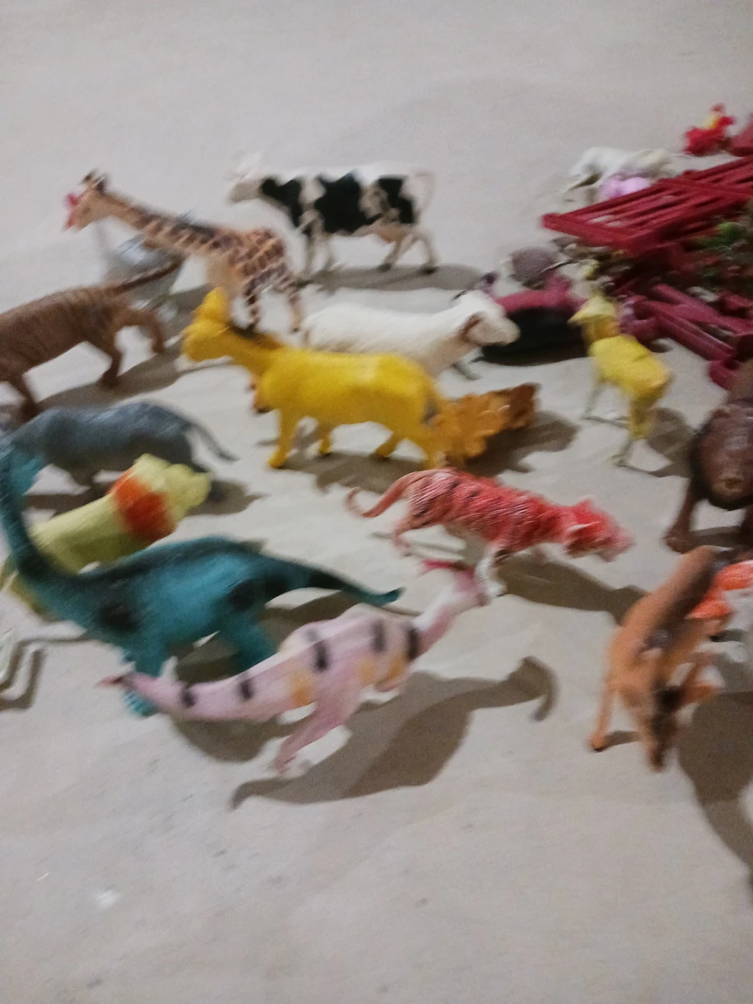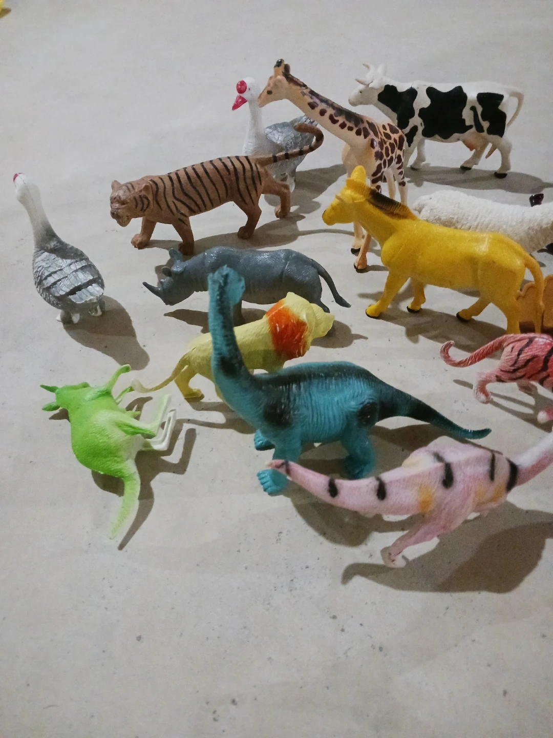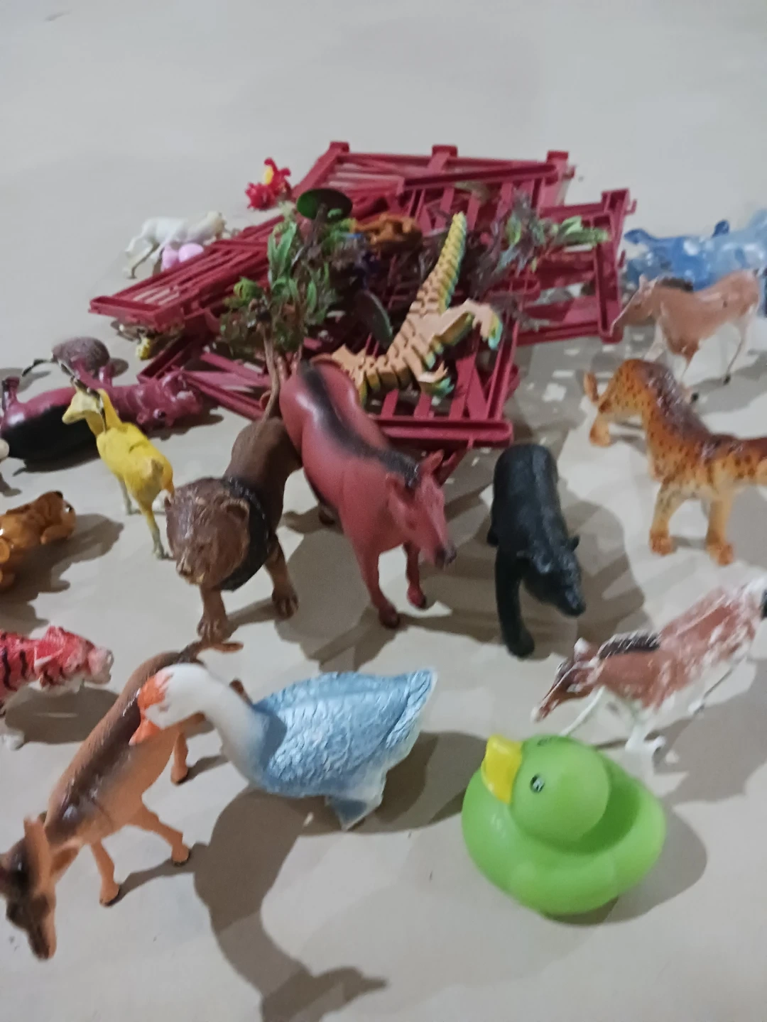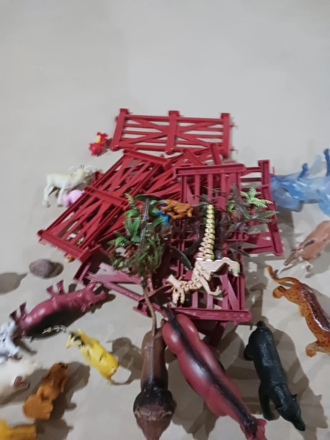 This lot includes a variety of plastic animal and dinosaur figurines. Also comes with red fencing pieces, perfect for creating imaginative play scenes. Great for kids who love animals and dinosaurs!