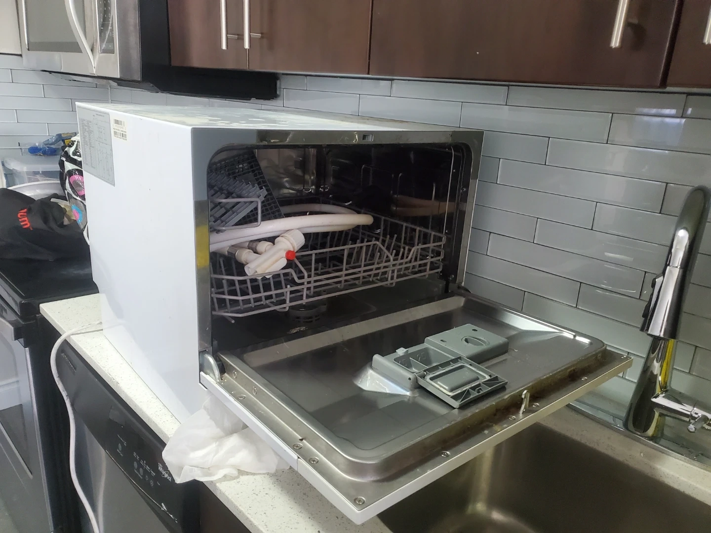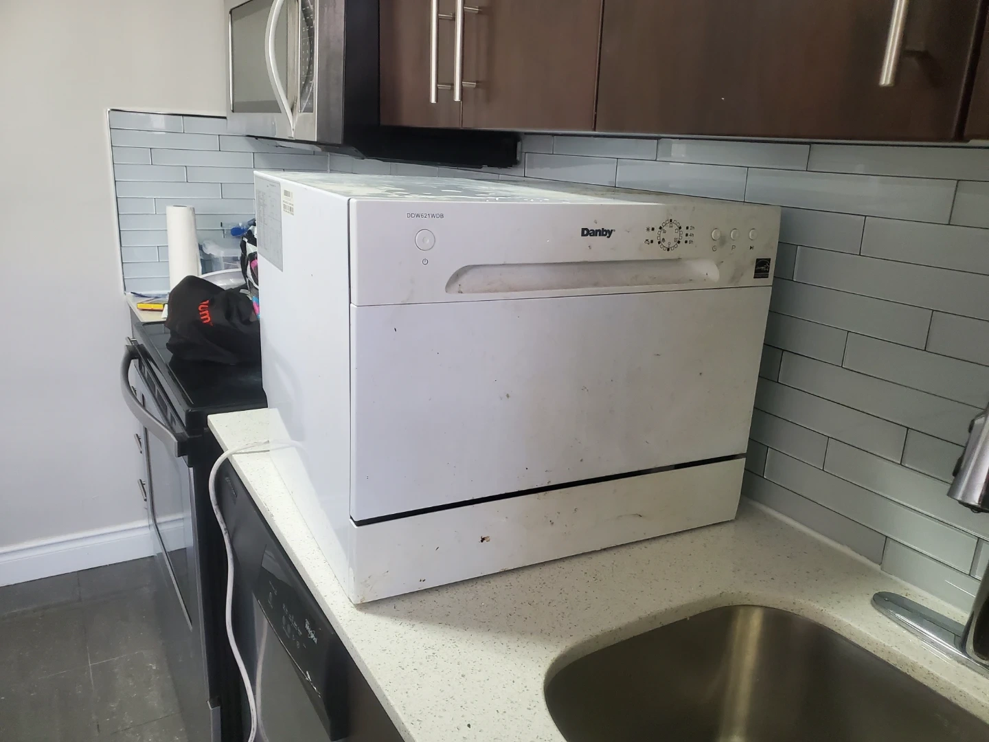 This is a Danby countertop dishwasher. It's white and has a compact design. Includes the racks and spray arm inside. Perfect for small kitchens or apartments! Must be picked up. Cash only.
