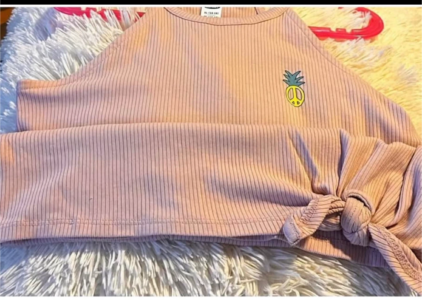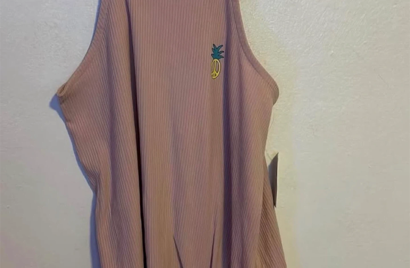 This Old Navy tank top is a size XL and made from a soft, ribbed material. It features a cute embroidered pineapple with a peace sign. It's perfect for casual wear in warmer weather!