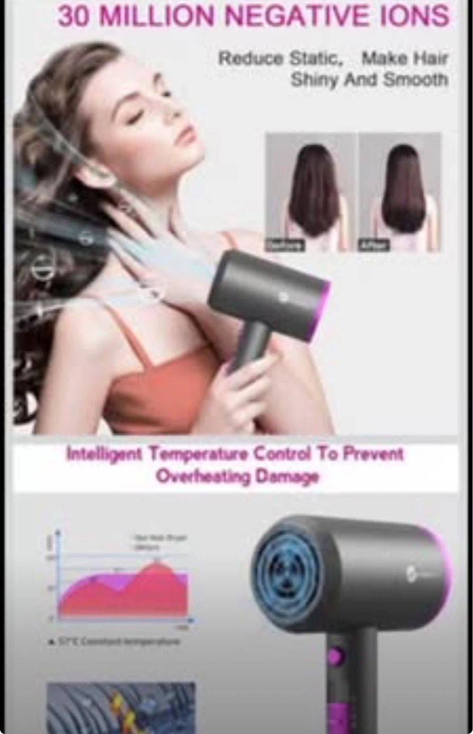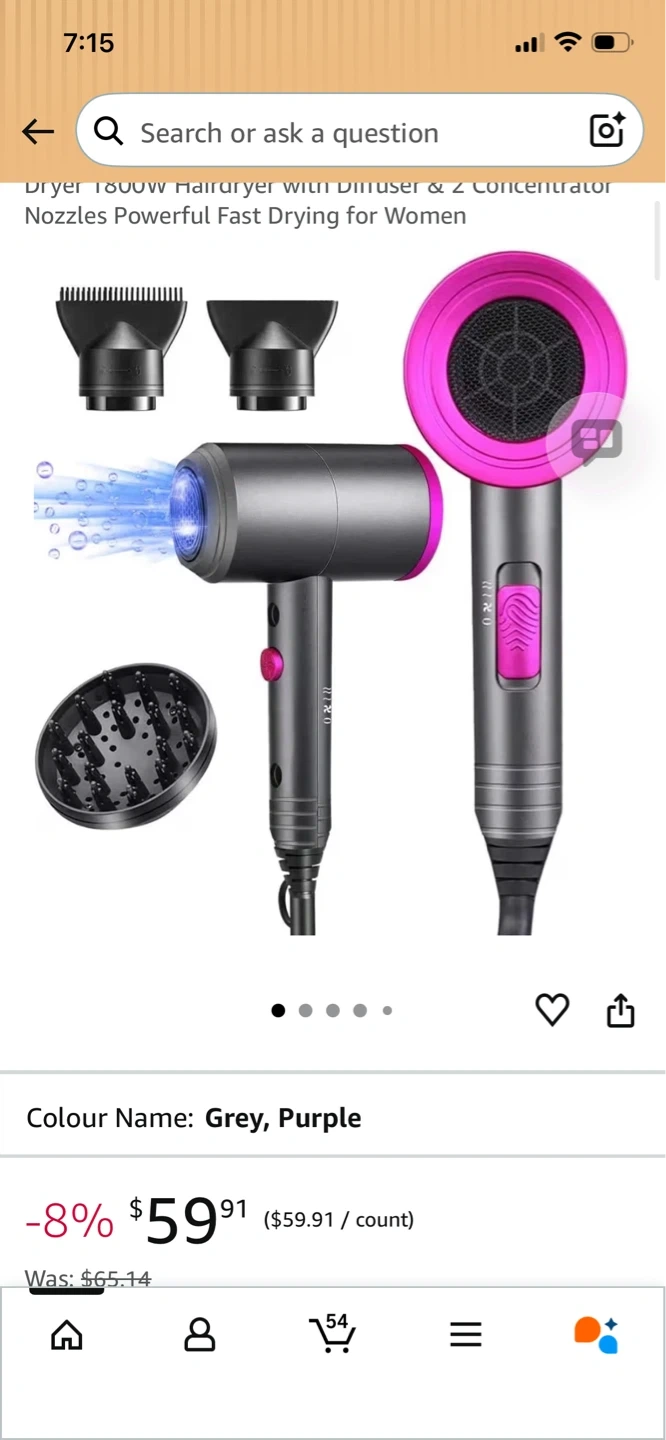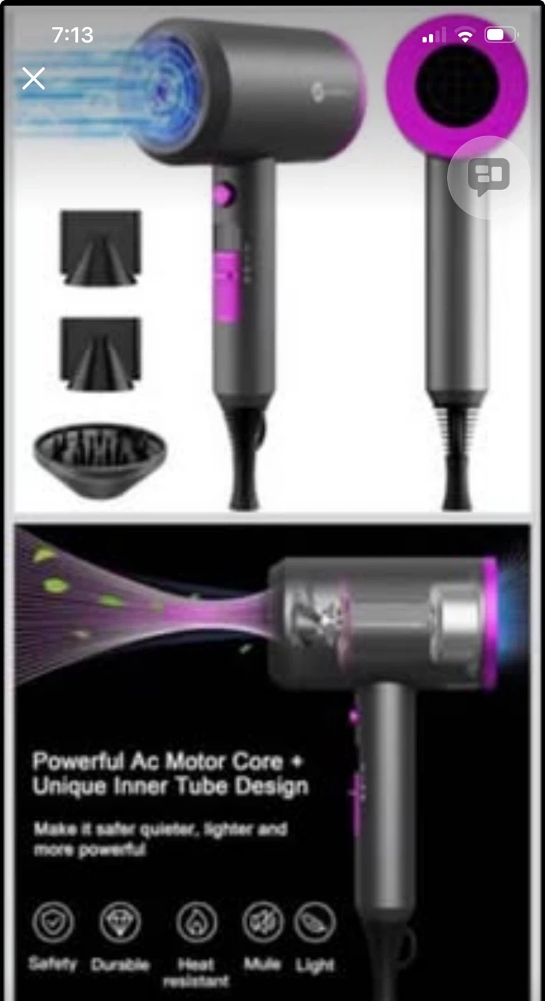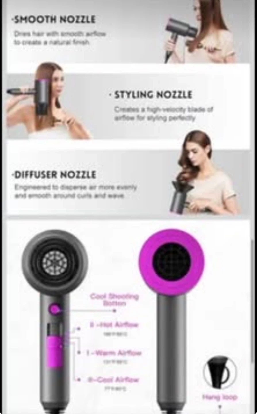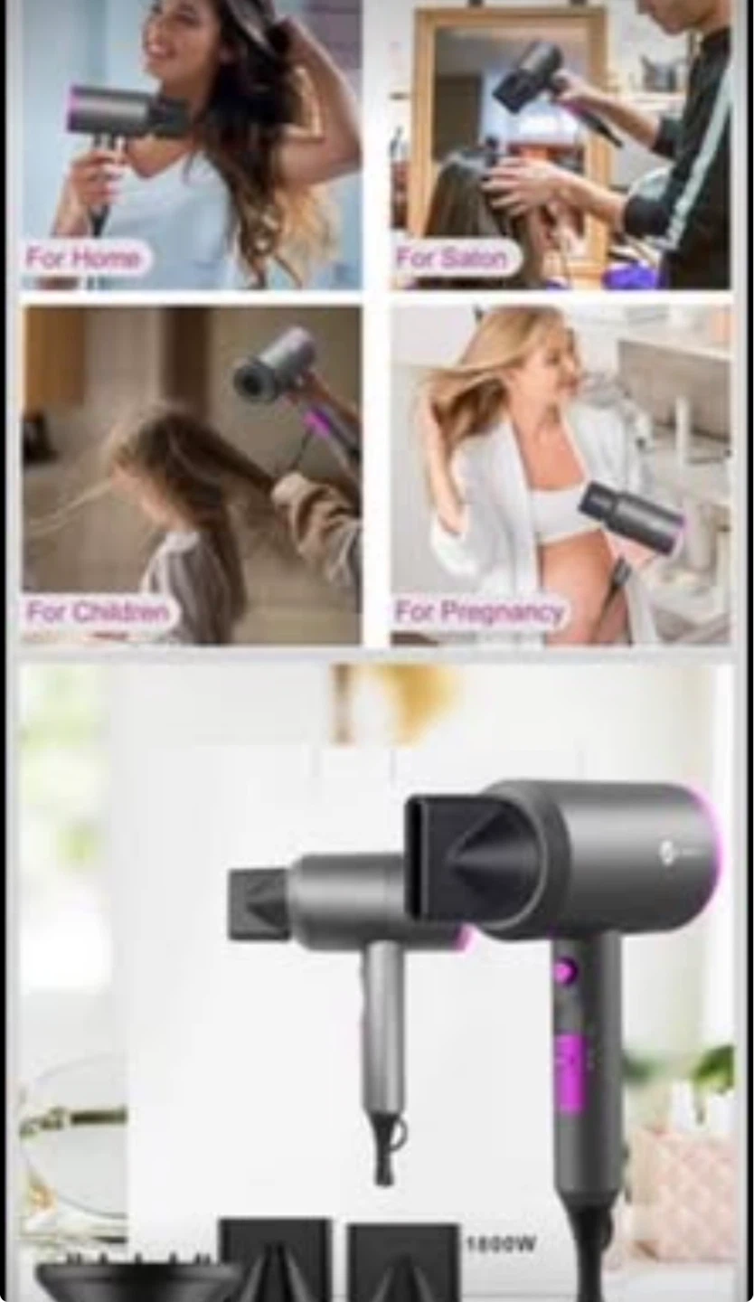 1800W Hair Dryer with Diffuser & Concentrator Nozzles