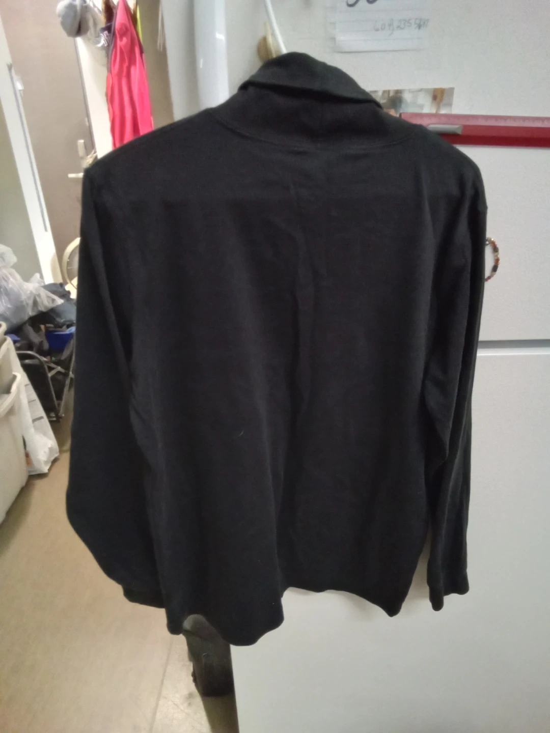 Selling a gently used black turtleneck from Utopia Wear in size L. The material is 55% cotton and 45% polyester. It's in great condition and ready for a new owner!