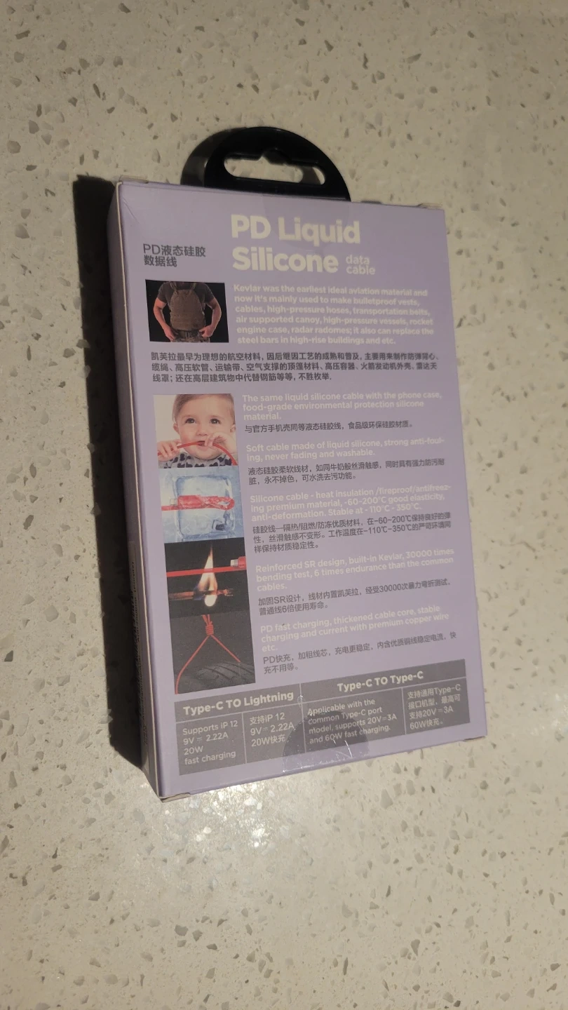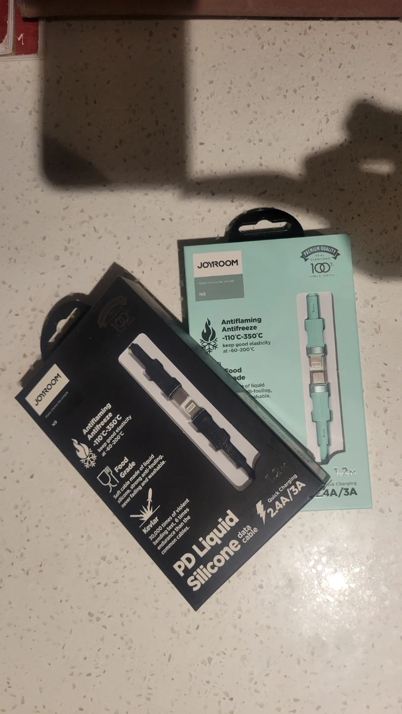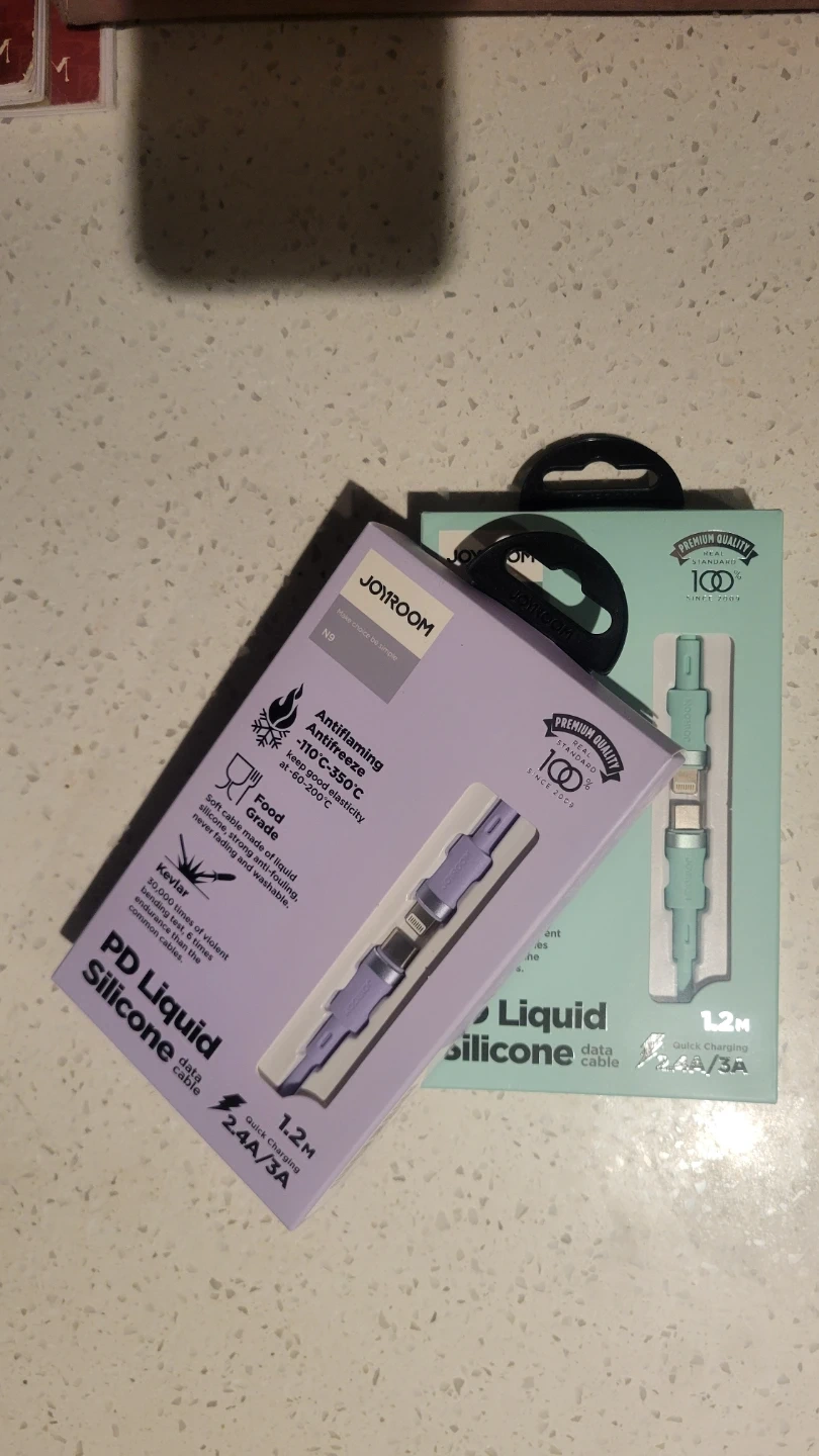This Joyroom data cable (type c to lightning) is made with PD liquid silicone and features antiflaming and antifreeze properties. It's food-grade and built with Kevlar for durability, capable of 35,000 violent bending tests. Supports 2.4A/3A quick charging. Choose your color between white, black, purple, mint, red and blue. Good as an extra cable for charging Airpods or iPhone at home, in the office or in the car.