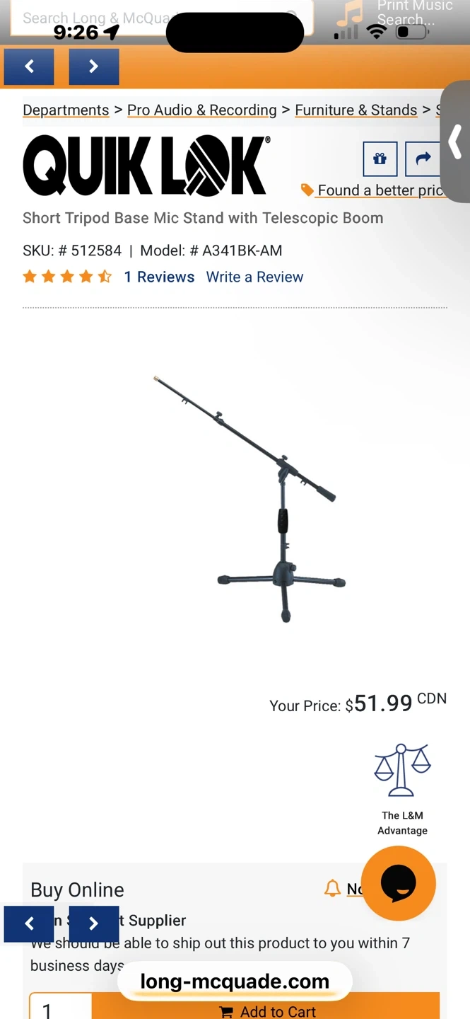 Quiklok Microphone Stand short tripod Telescopic Boom
