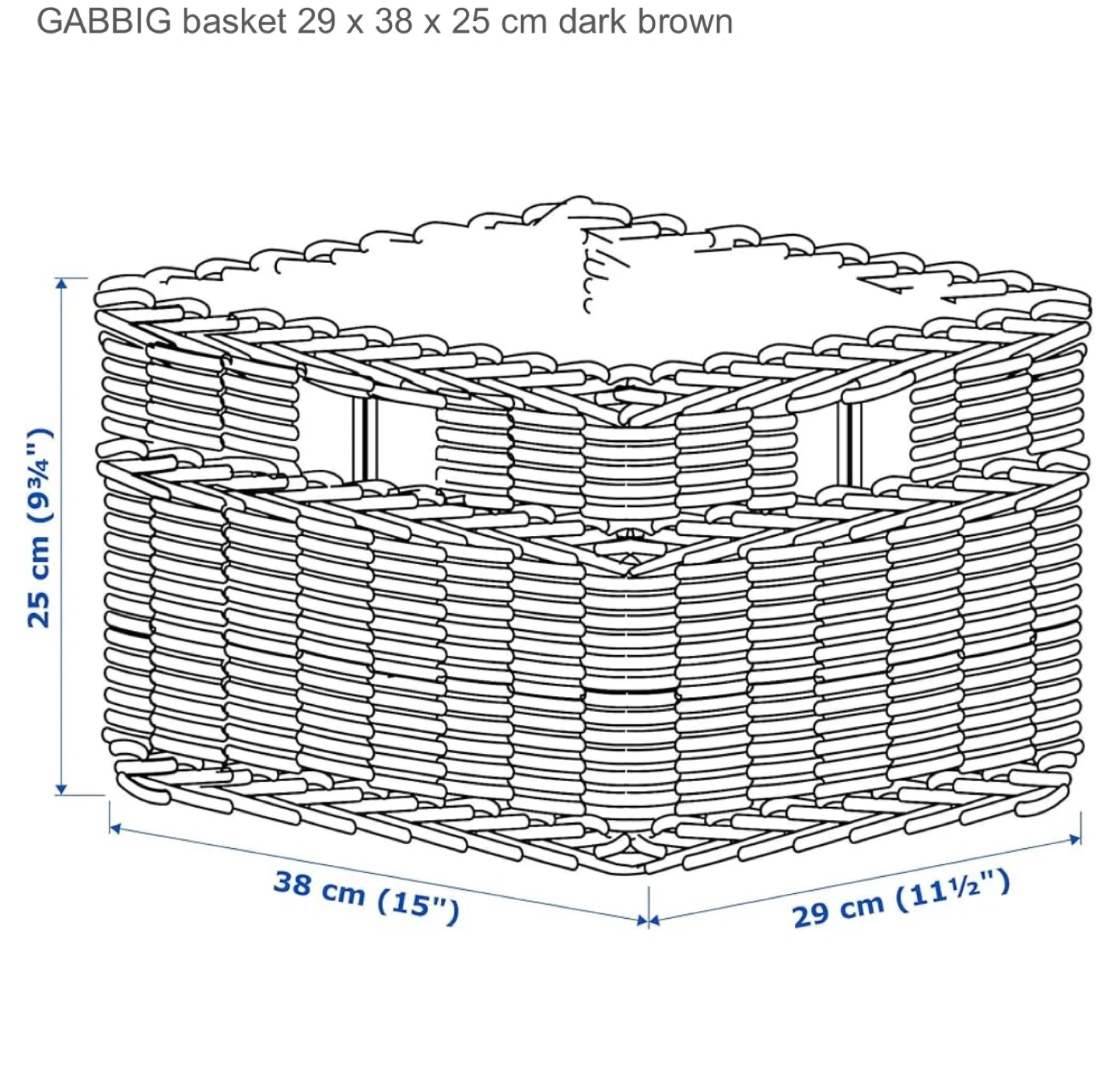 IKEA GABBIG Basket 29 x 38 x 25 cm Dark Brown