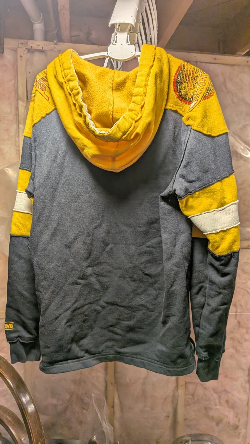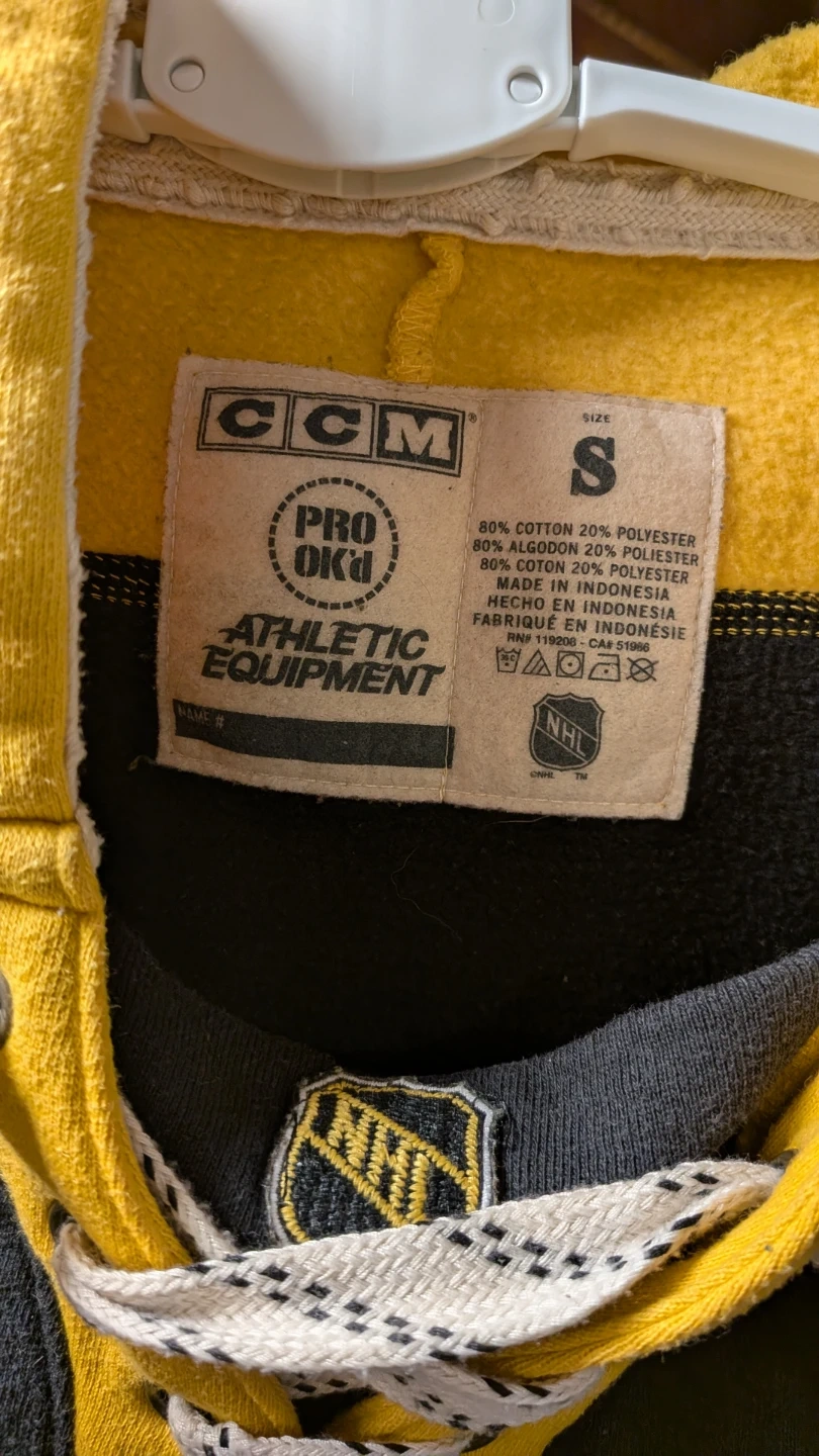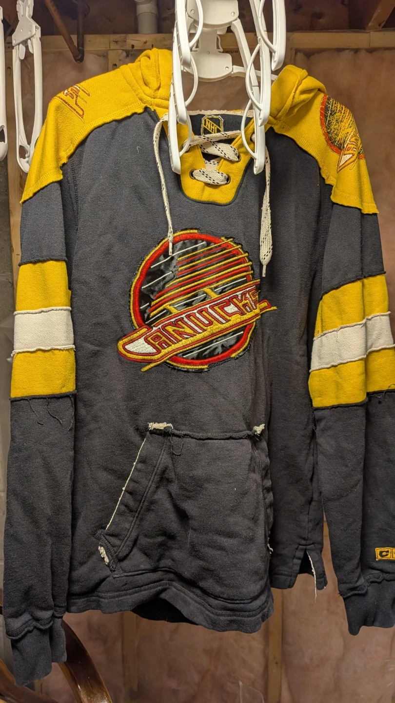 This is a CCM branded Vancouver Canucks hockey hoodie. It's made from 80% cotton and 20% polyester. A fun piece for any Canucks fan!