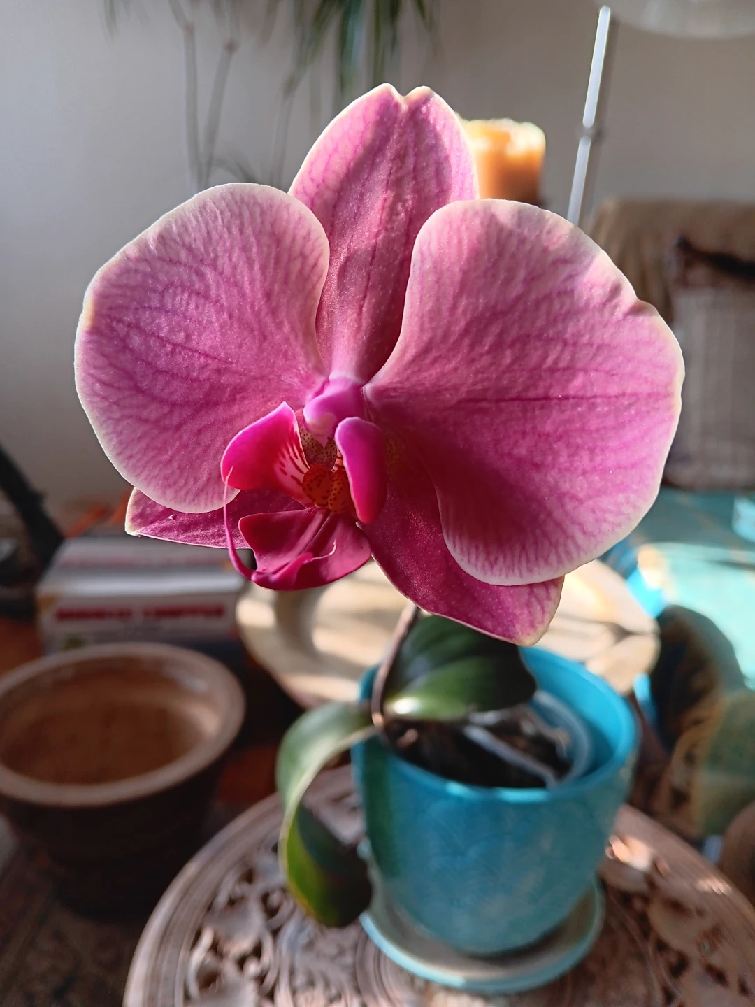 Pink Orchid Plant in Blue Pot