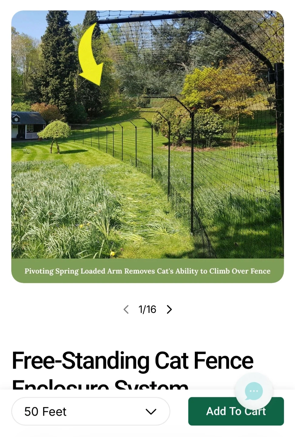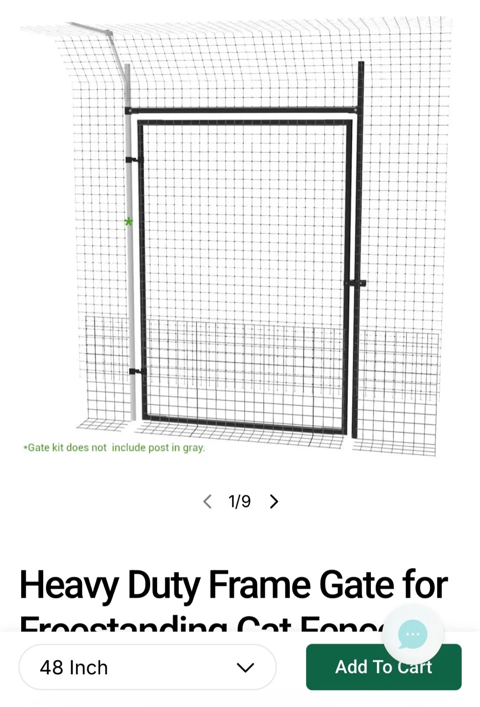 This system includes 50 feet of freestanding fence, plus 50 feet to convert an existing fence into a cat-proof enclosure. It features a pivoting spring-loaded arm that removes a cat's ability to climb over the fence. It's designed to keep your feline friends safely contained within your yard. Comes with 48 inch heavy duty gate and hog ring gun +2500 hog rings to make installation faster. Brand new, still in the box. Paid $2200