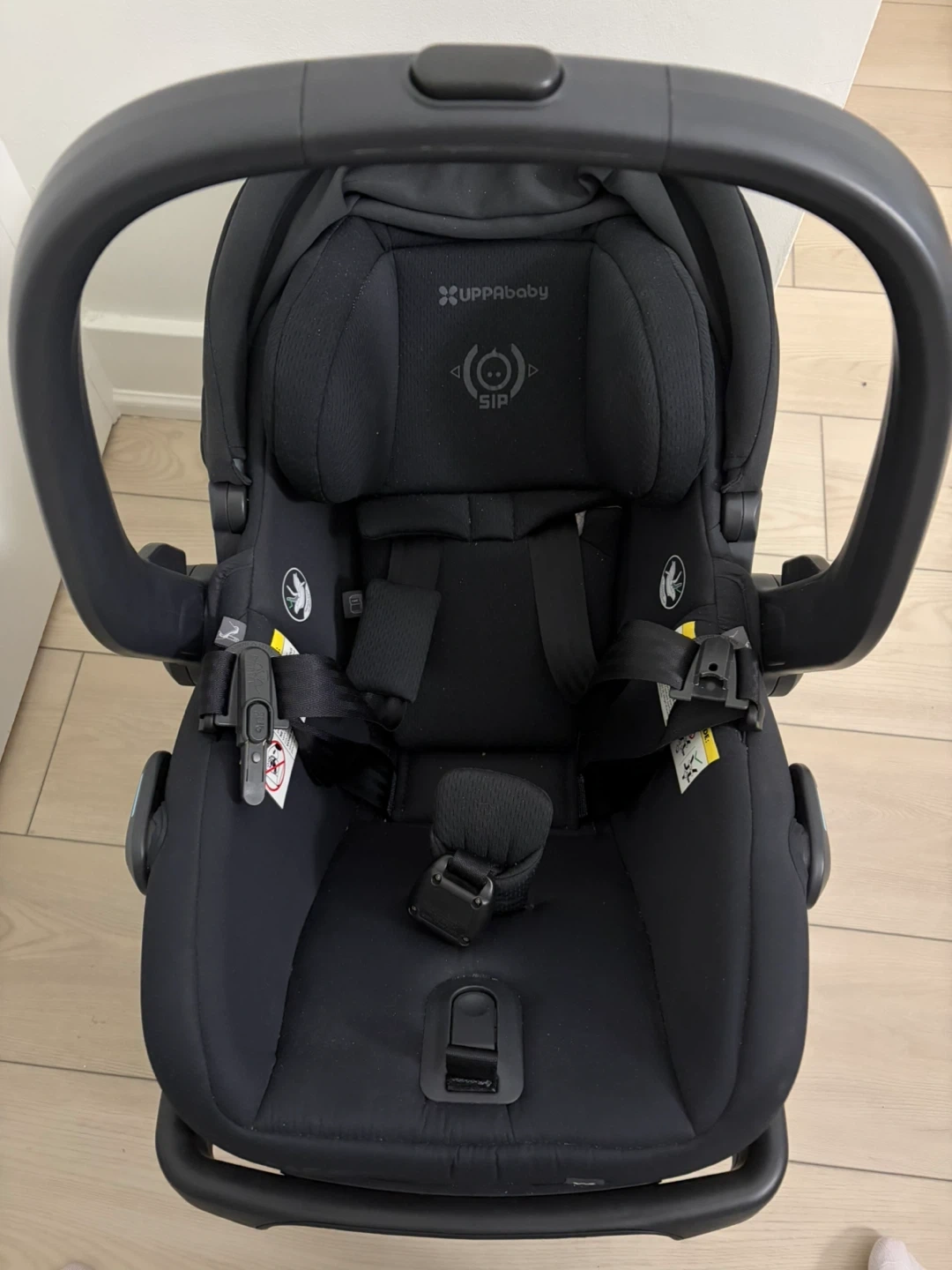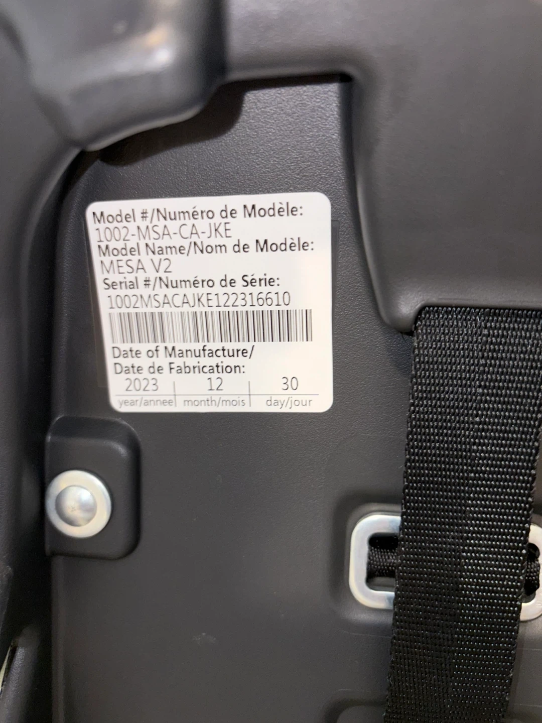 UPPAbaby MESA V2 infant car seat in black. Manufactured on March 30, 2023. Features SMARTSECURE® system for easy installation. Includes a removable infant insert. A reliable choice for keeping your little one safe on the go! Used for 5 months no accidents & smoke/pet free home.