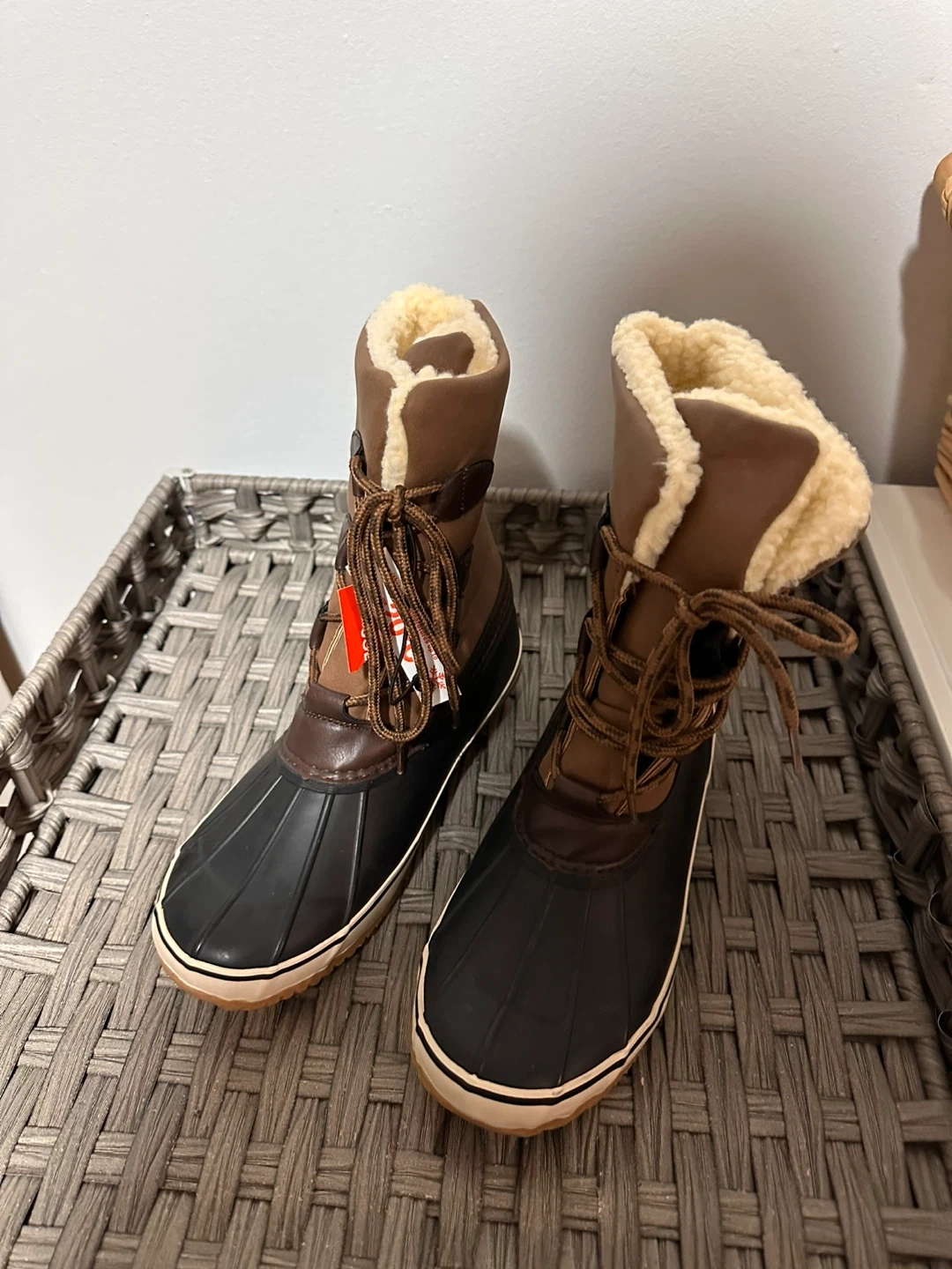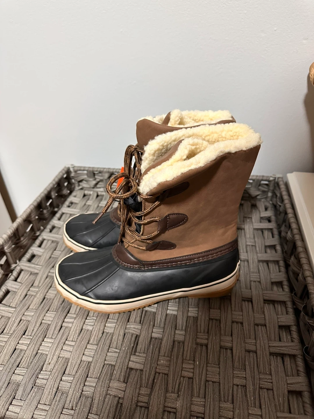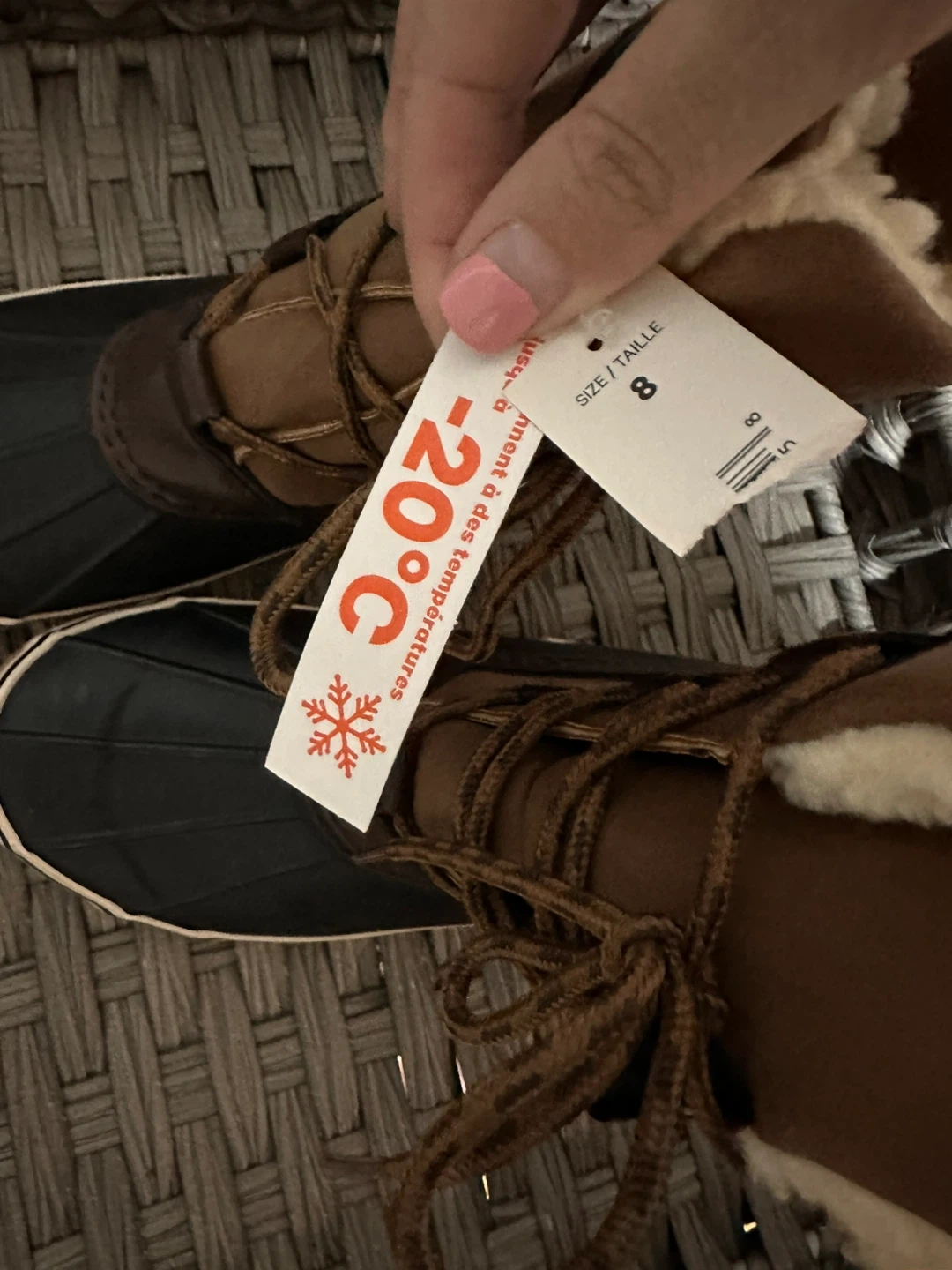 WindRiver duck boots, perfect for keeping your feet warm and dry! They're a size 8 and feature 3M Thinsulate insulation and faux fur lining to keep your feet cozy in temperatures as low as -20°C