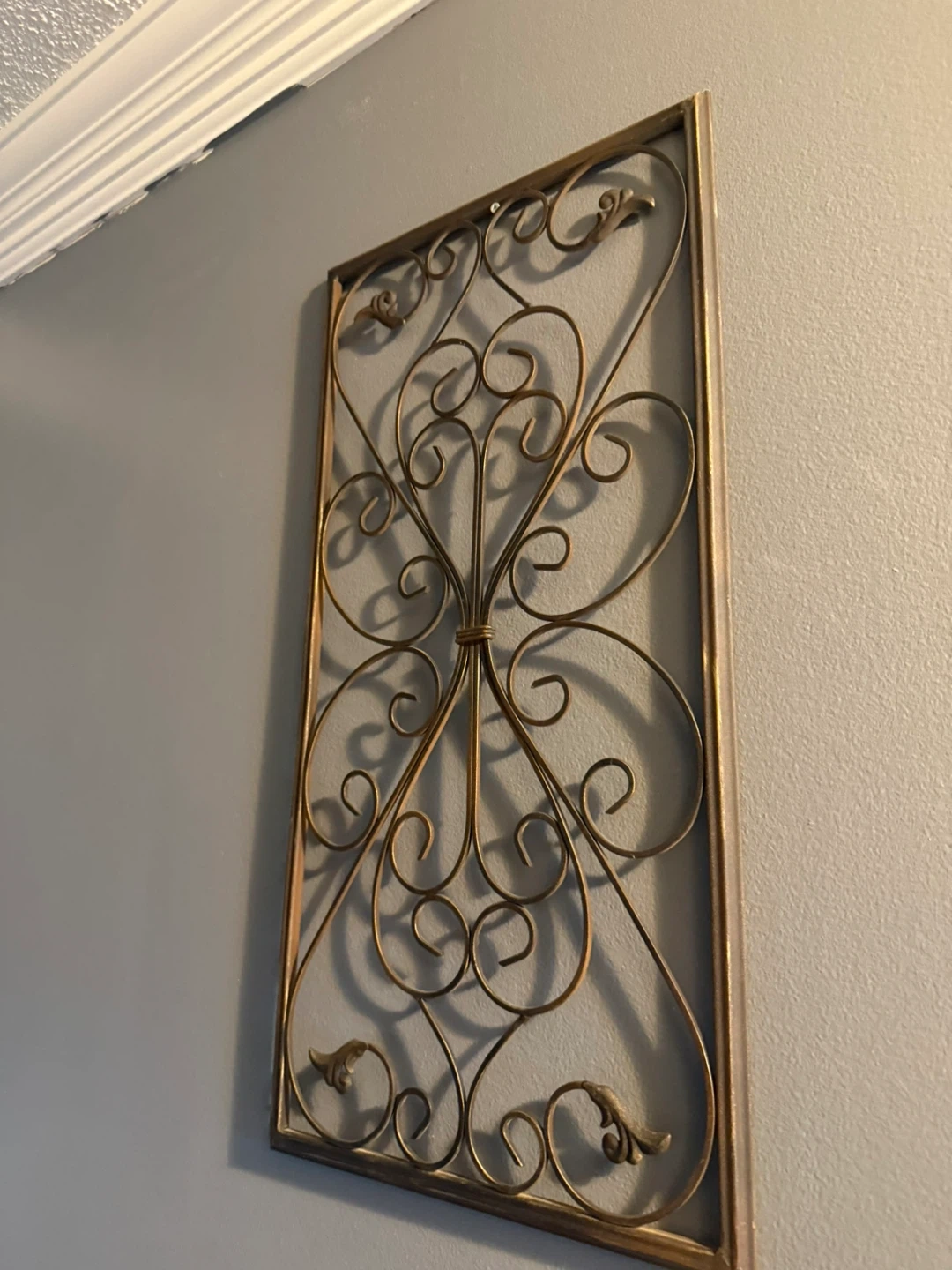 Selling a set of two metal wall decor pieces. These have a beautiful, intricate design that would look great in any room. They're in excellent condition and ready to add a touch of elegance to your home!