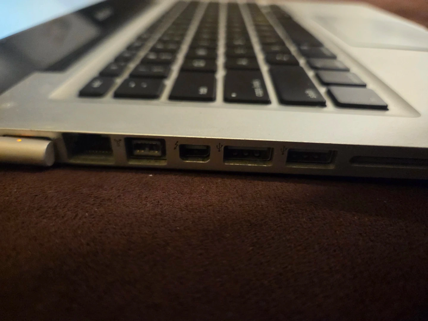 It's a silver Apple MacBook Pro laptop 2015 with a full keyboard and trackpad. Has scratches on it at the top but other then that just needs upgrades It has multiple USB ports and a Thunderbolt port. Needs ram upgrade thats all I know...