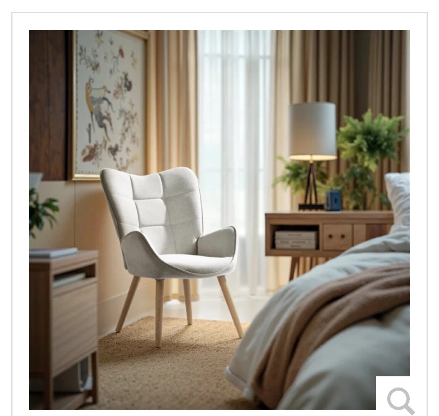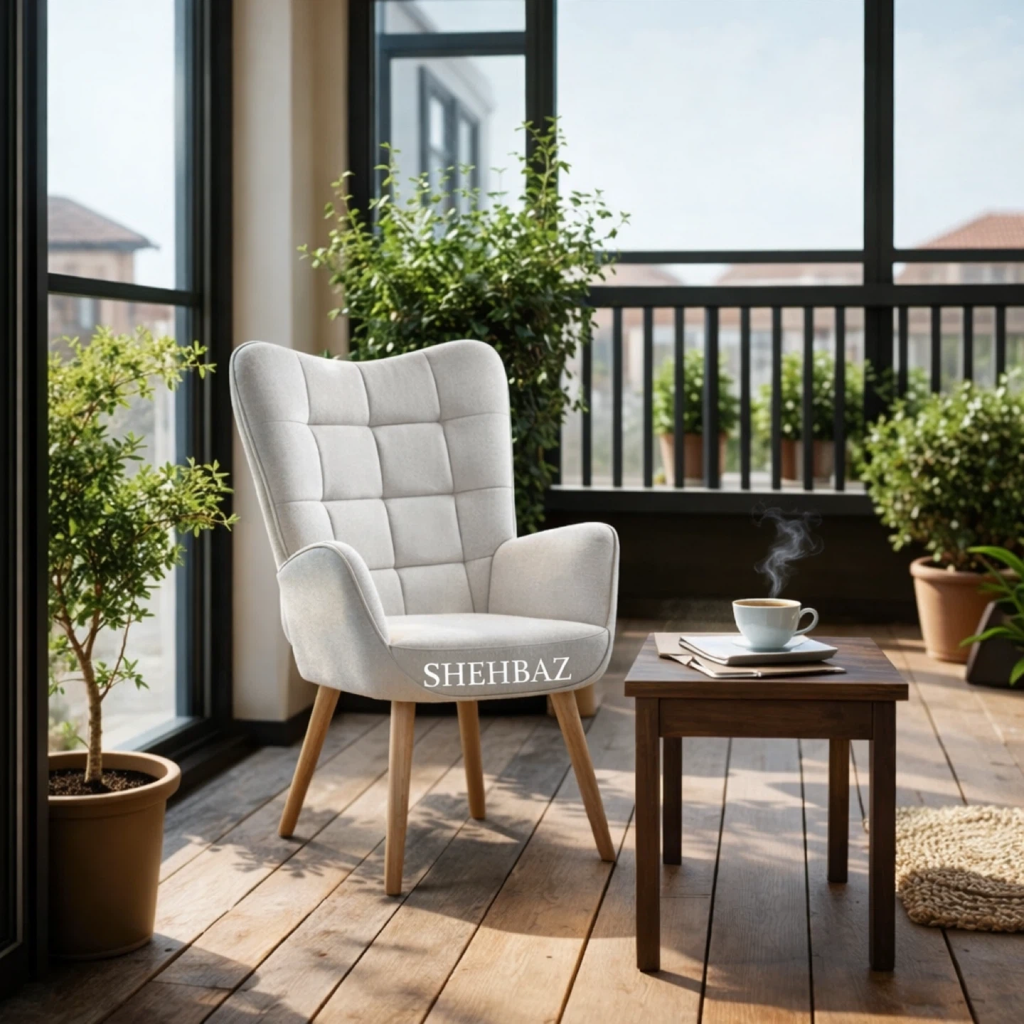 Comfortable and stylish accent chair with soft fabric and solid wooden legs. Perfect for living room, bedroom, or reading space.