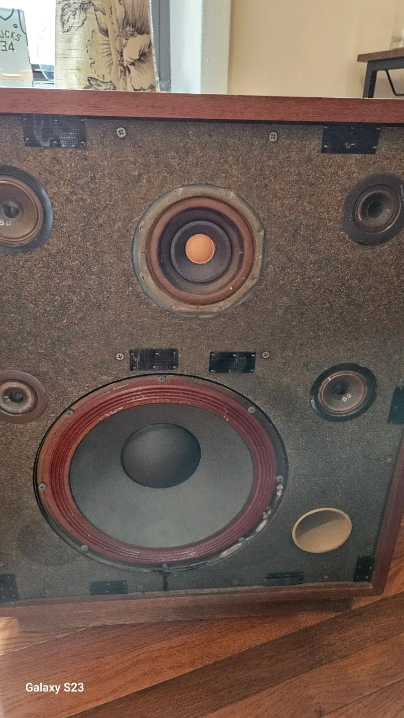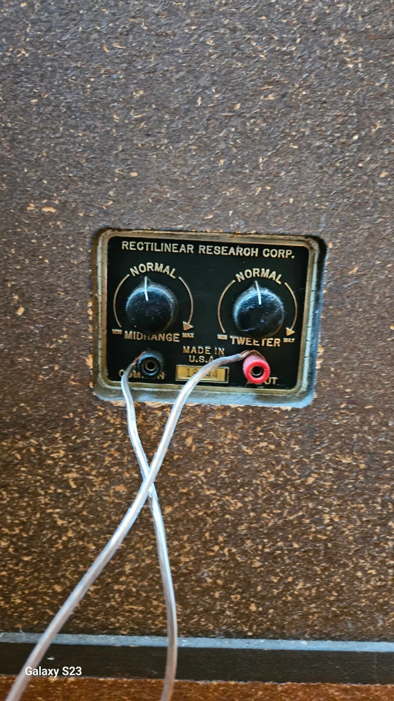 Selling 02 (two) vintage Rectilinear floor speaker ($150 each) It has a wooden cabinet and a patterned front grill. There are some scratches on the side of the cabinet, but overall it's in good condition for its age.