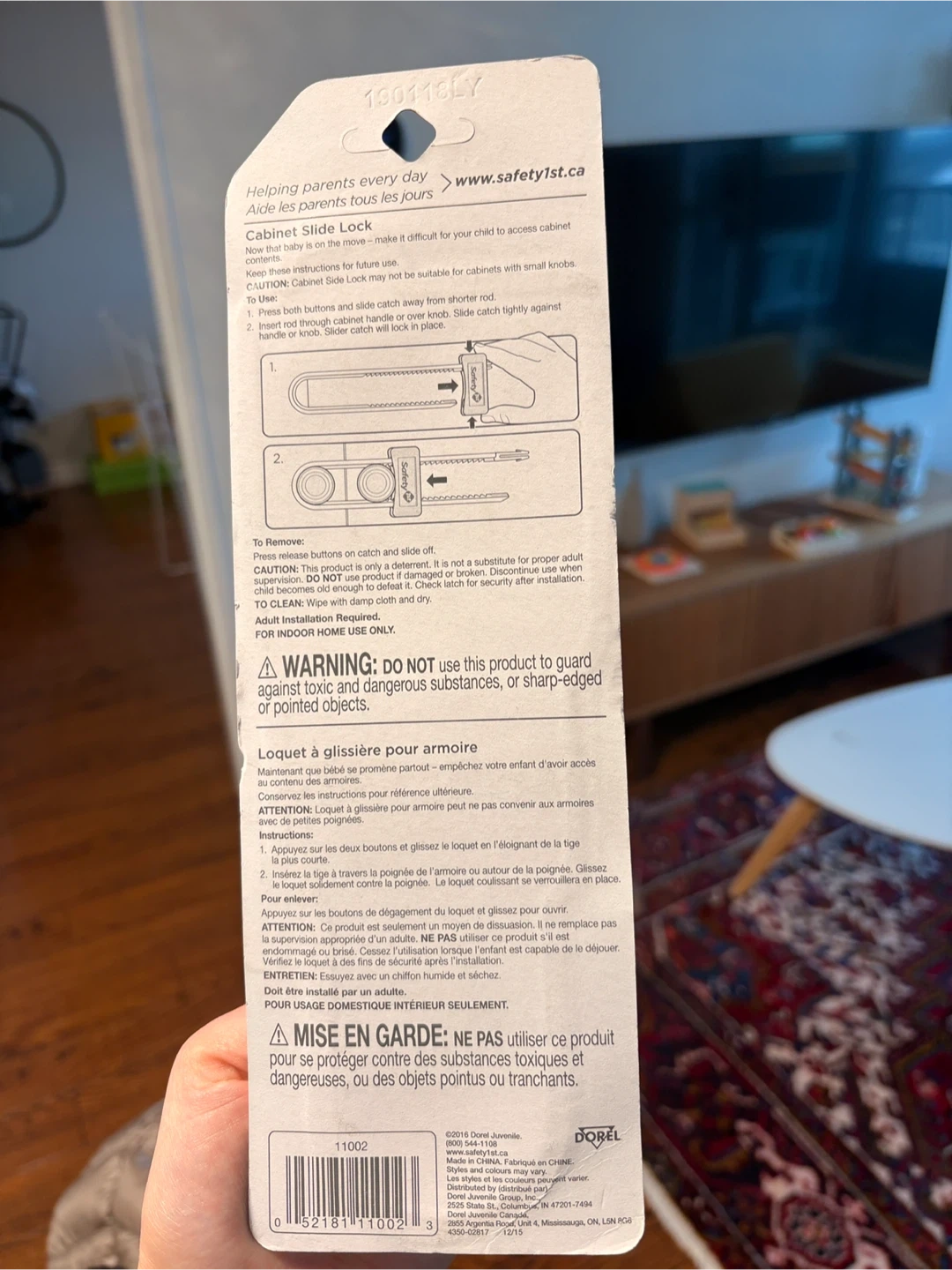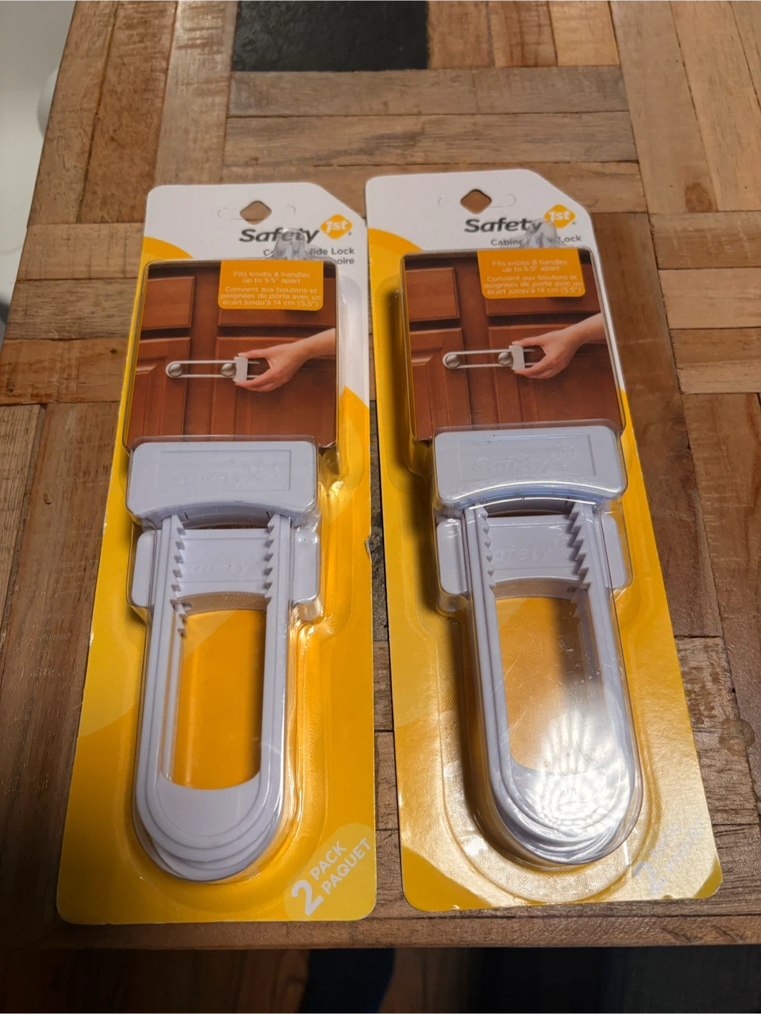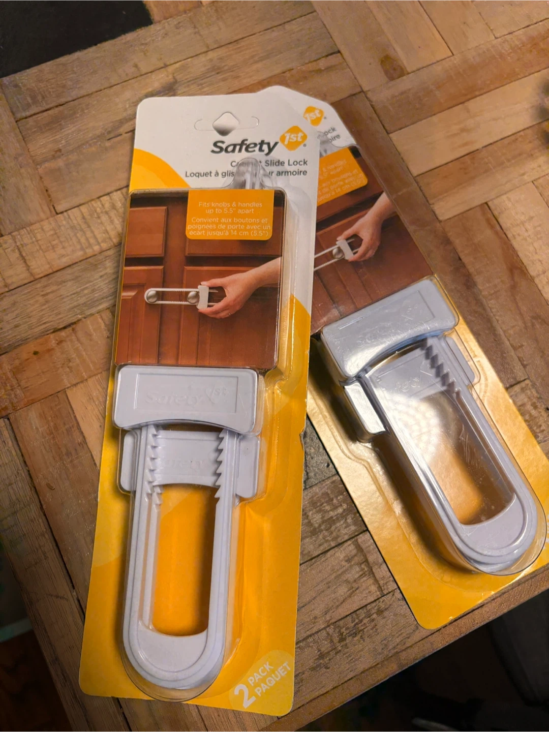 These Safety 1st Cabinet Slide Locks are designed to keep little ones out of cabinets and drawers. They fit knobs and handles and secure to cabinetry up to 14 inches apart. These locks are great for preventing curious toddlers from accessing potentially harmful items. Easy to install and use!