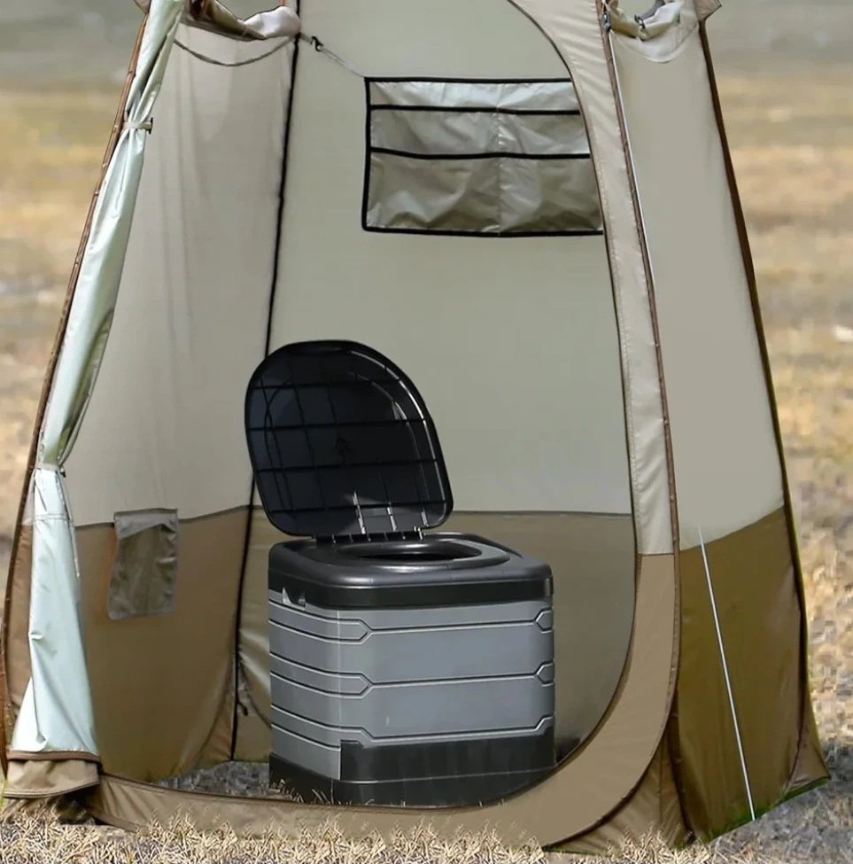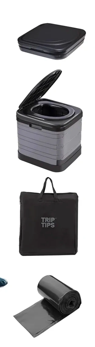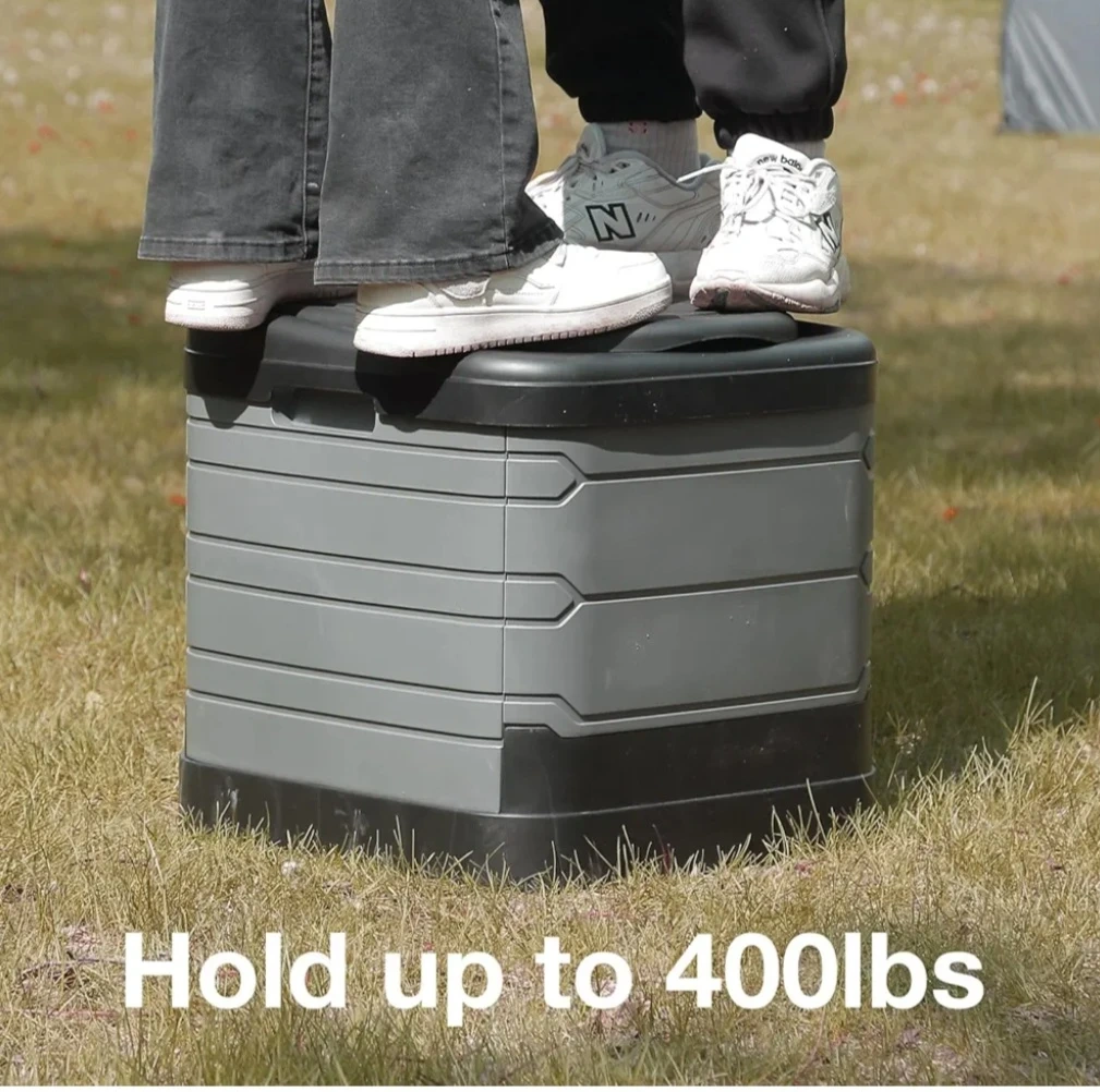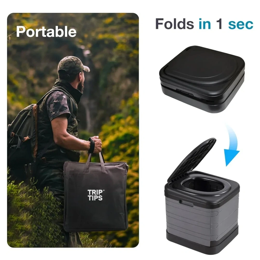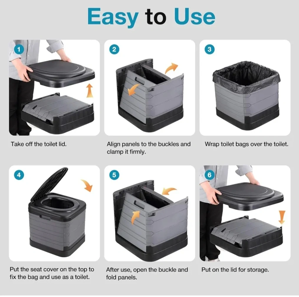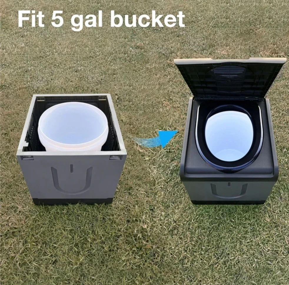 This portable folding toilet is easy to set up and use. It holds up to 400 lbs and can fit a 5-gallon bucket. It's perfect for in the boat, camping, road trips, or any outdoor activity.
