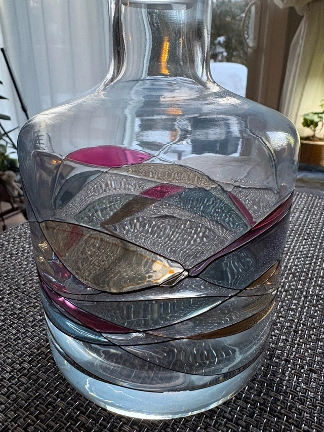 The design is inspired by the stained-glass windows of the Sagrada Familia Basilica in Barcelona. Excellent gift idea or a beautiful addition to your glassware collection. Pickup only in Burlington. (Pinedale Ave) FIRM at $30. Thank you.