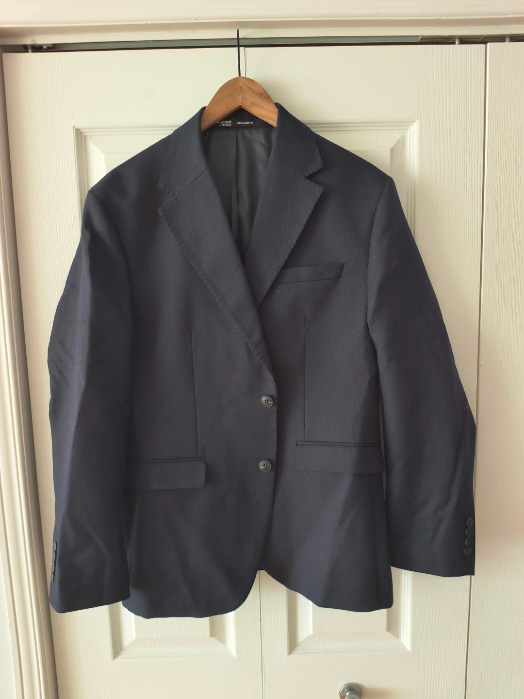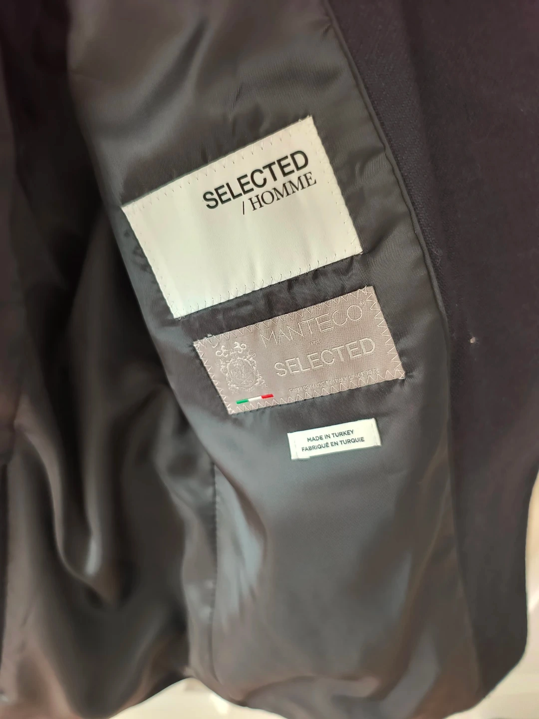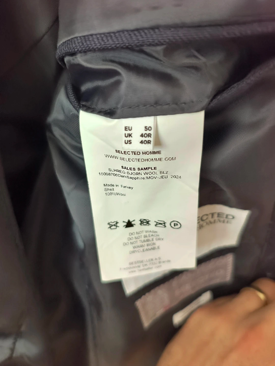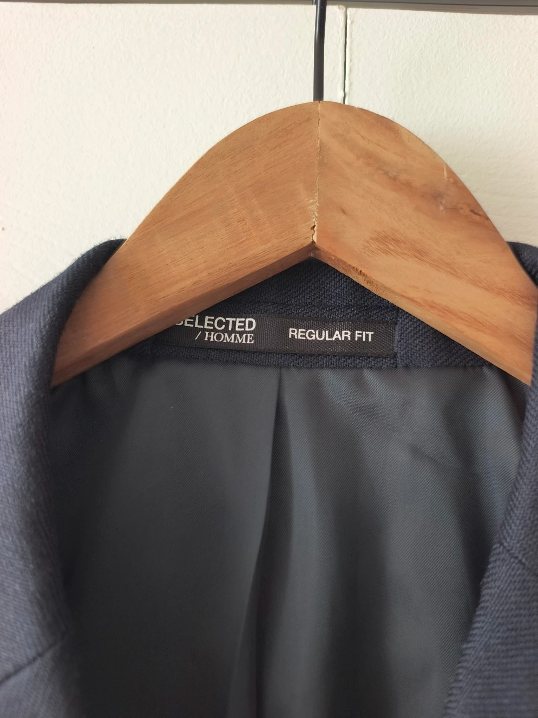 Selected Homme blazer in a deep navy colour. It's made from 100% wool and features a regular fit. This jacket is suitable for formal occasions.