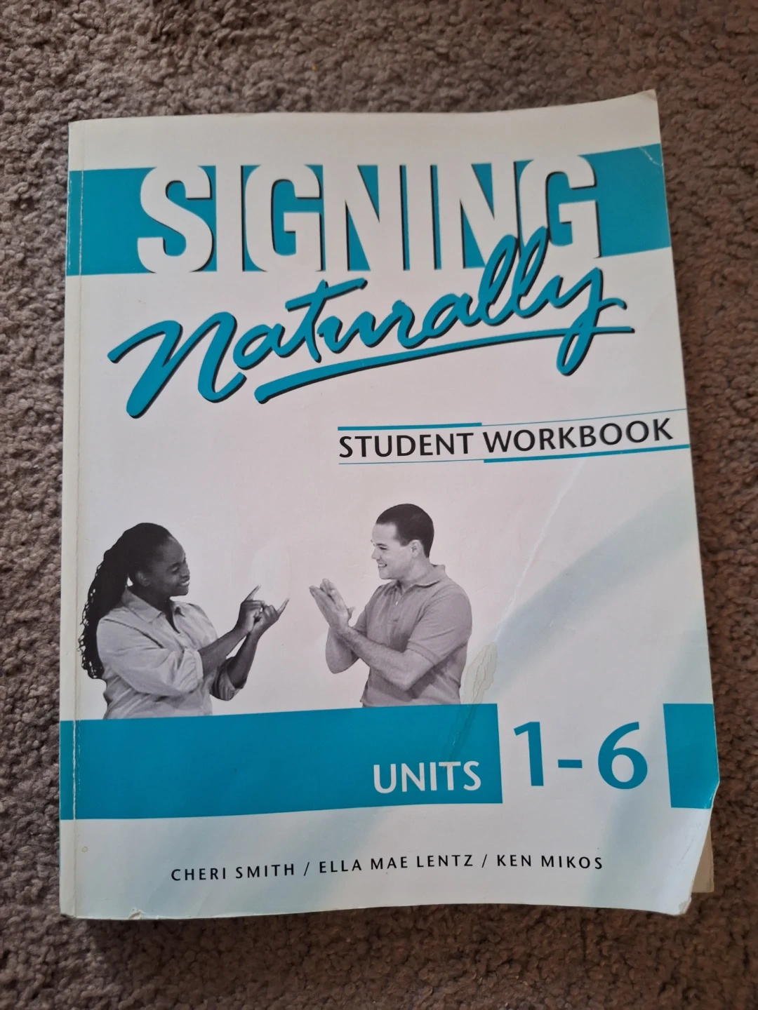 This workbook is for learning American Sign Language. It includes over seven hours of ASL video clips on two DVDs. The workbook and DVDs supplement the curriculum for the "Signing Naturally" series.