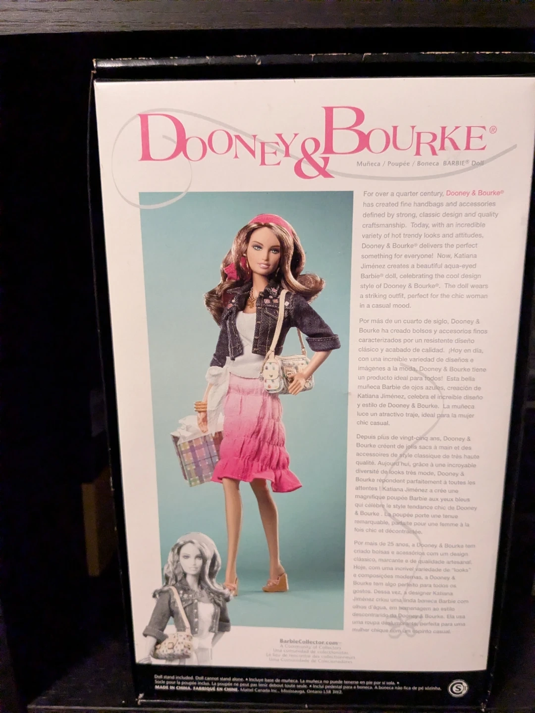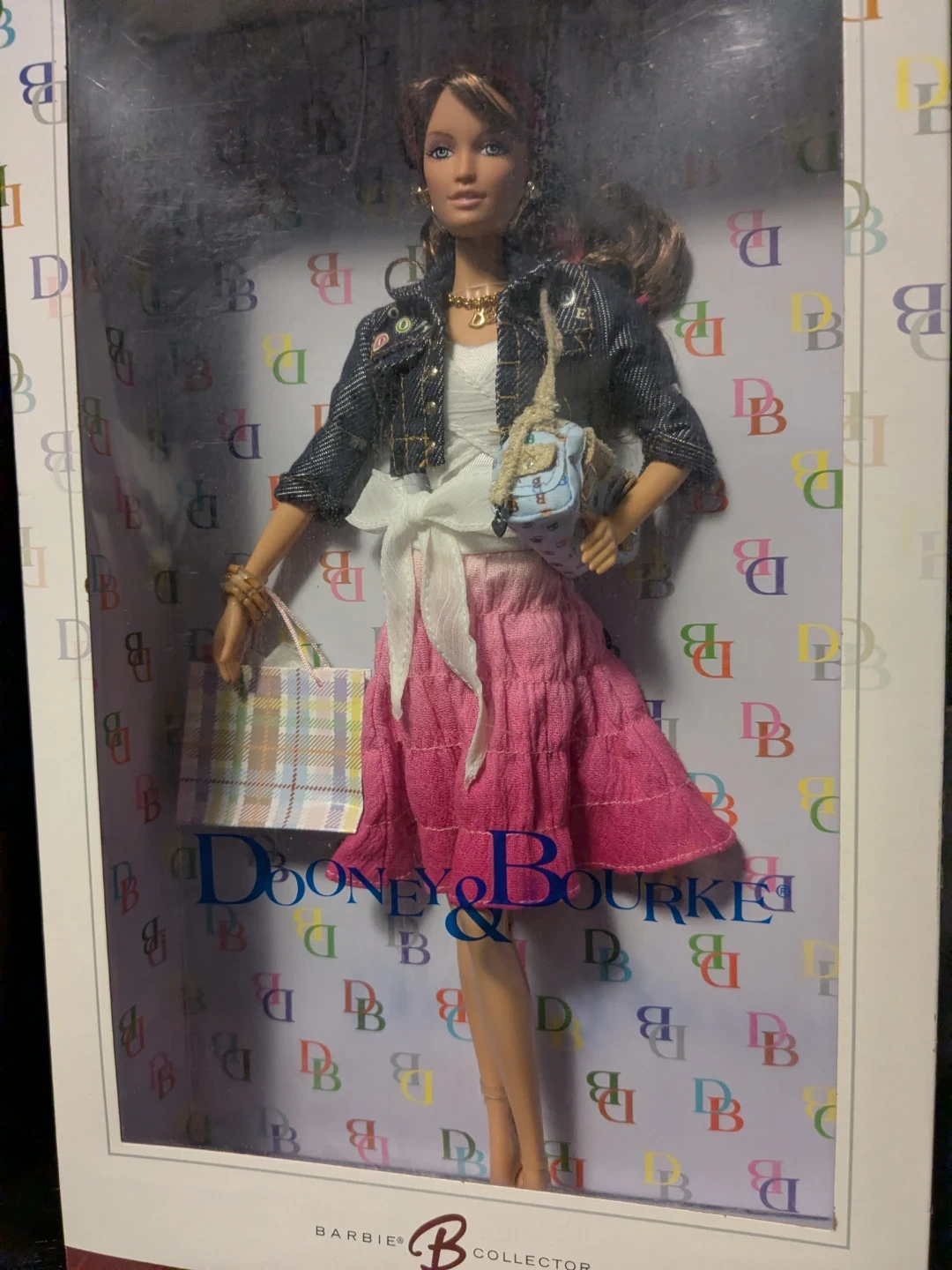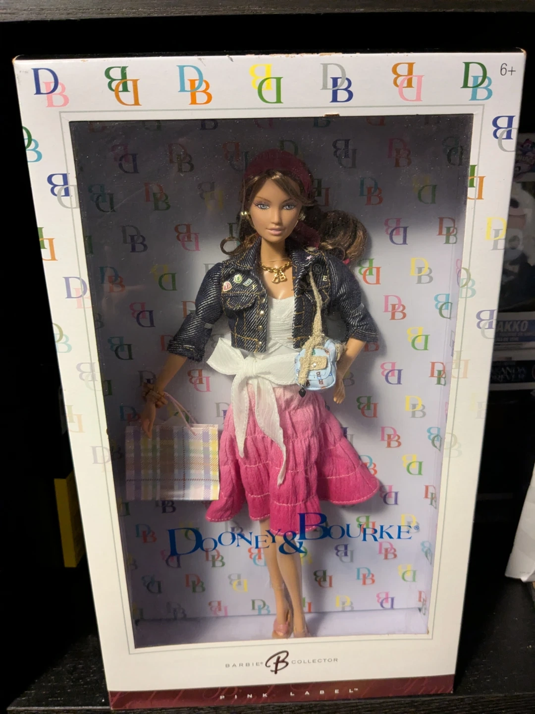This is a Dooney & Bourke Barbie doll. It's part of the Barbie Collector series and is a Pink Label doll. Includes doll, handbag, and shopping bag. The box is in fair condition and has neve been opened.