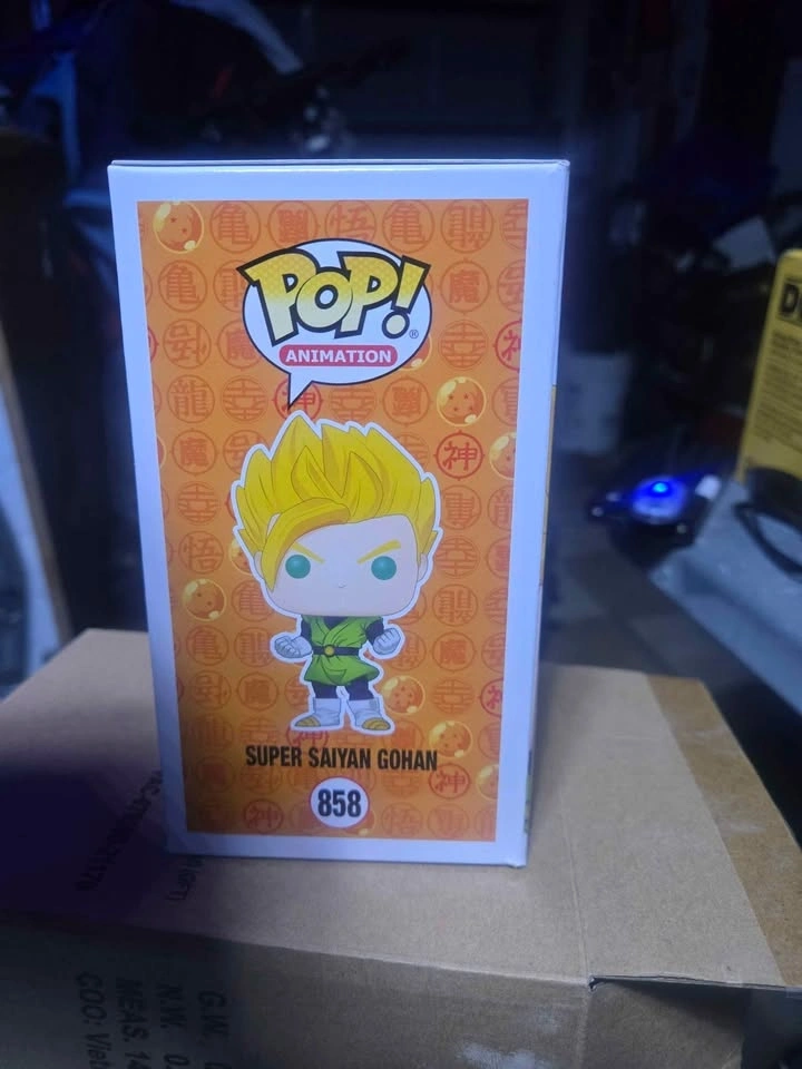 Awesome Funko Pop! Animation Super Saiyan Gohan figure. This is #858 from Dragon Ball Z. It glows in the dark and is an Entertainment Earth Exclusive Limited Edition. Still in original box, never opened.