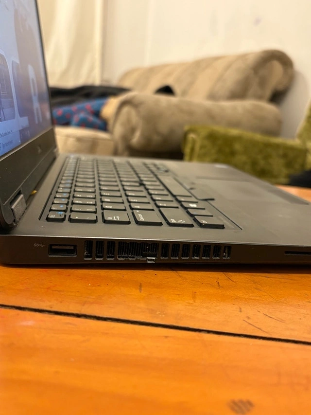 For sale is a Dell laptop, ready for a new owner. The charger plug needs attention, and the battery needs to be replaced. It won't turn on without the charger plugged in. Screen size is 14 inches. If the ad is up, it's available!