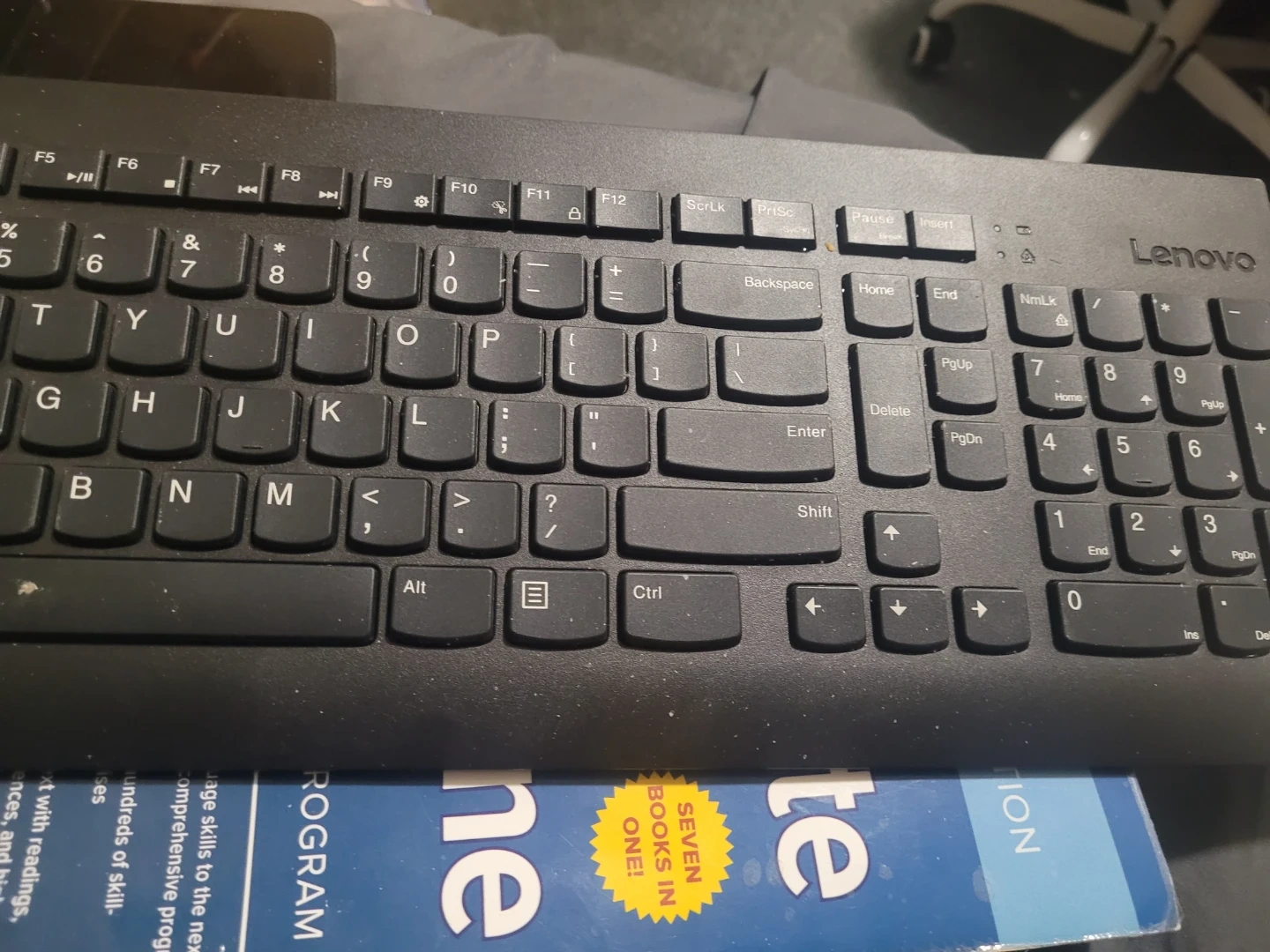 This is a black Lenovo wireless keyboard. It features a full number pad. Great for everyday computer use!