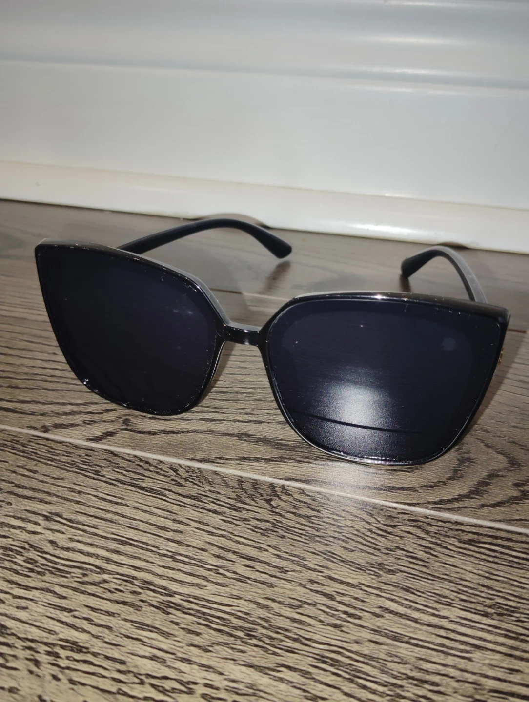 Selling a pair of stylish black cat-eye sunglasses with gold design. They're in great condition and ready to add a touch of flair to your look!