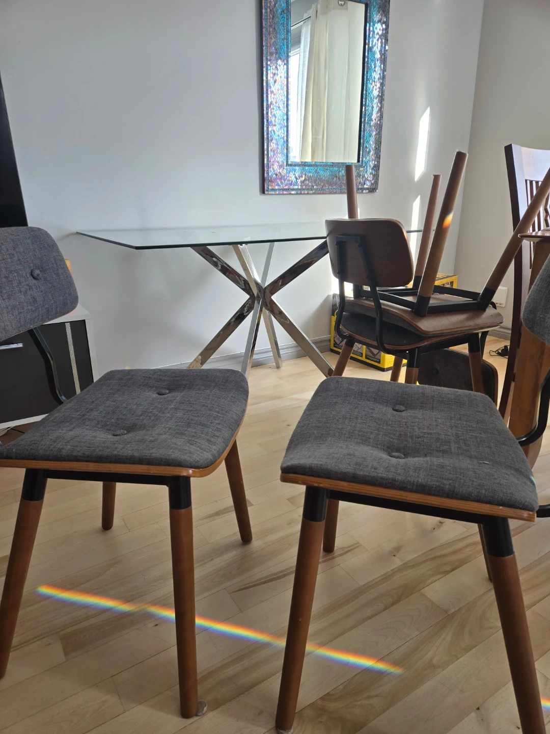 Selling a glass top dining table with a chrome base. It’s in great condition and would be a stylish addition to any dining room