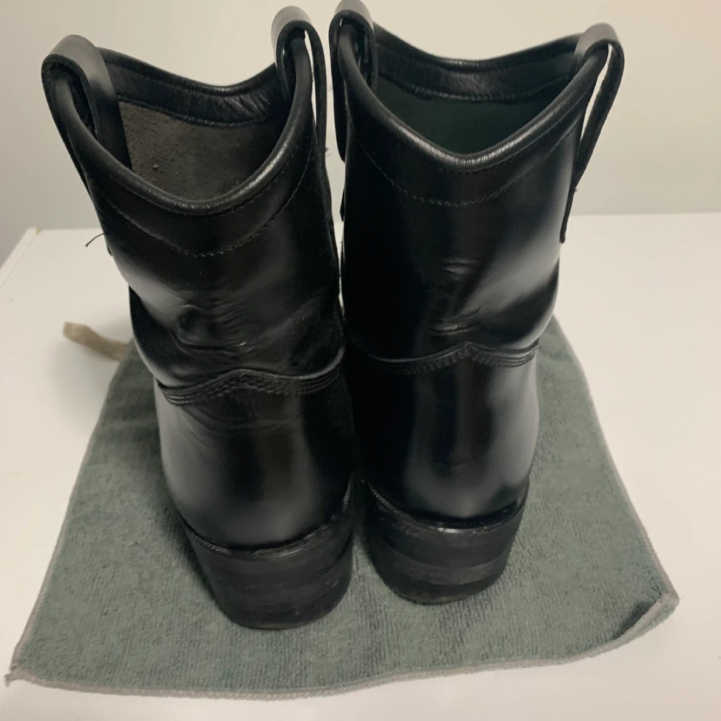 Classic black leather cowboy boots with a pointed toe and stacked heel. Leather lining and sole. These boots are ready for wear!
