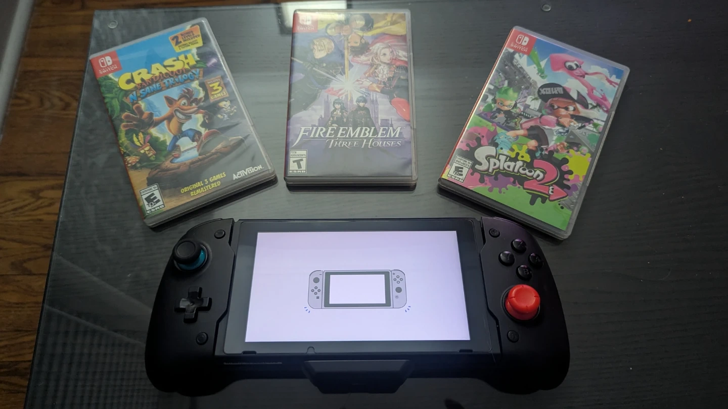 Bundle includes three Nintendo Switch games: Crash Bandicoot N. Sane Trilogy, Fire Emblem: Three Houses, and Splatoon 2. Crash Bandicoot includes the original 3 games remastered. All games are for Nintendo Switch.