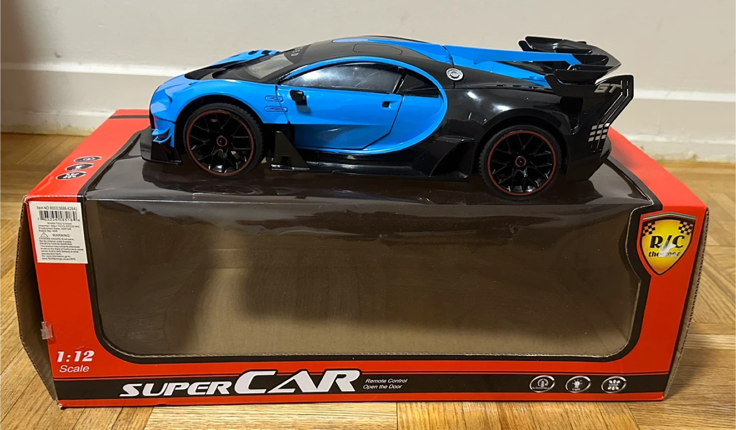 The car comes with the box, remote and all charging accessories. Batteries included.