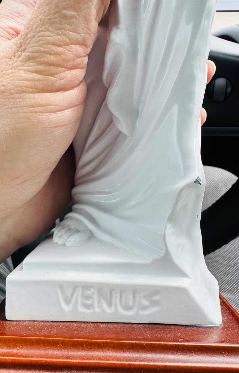 White Venus Statue with Wooden Base