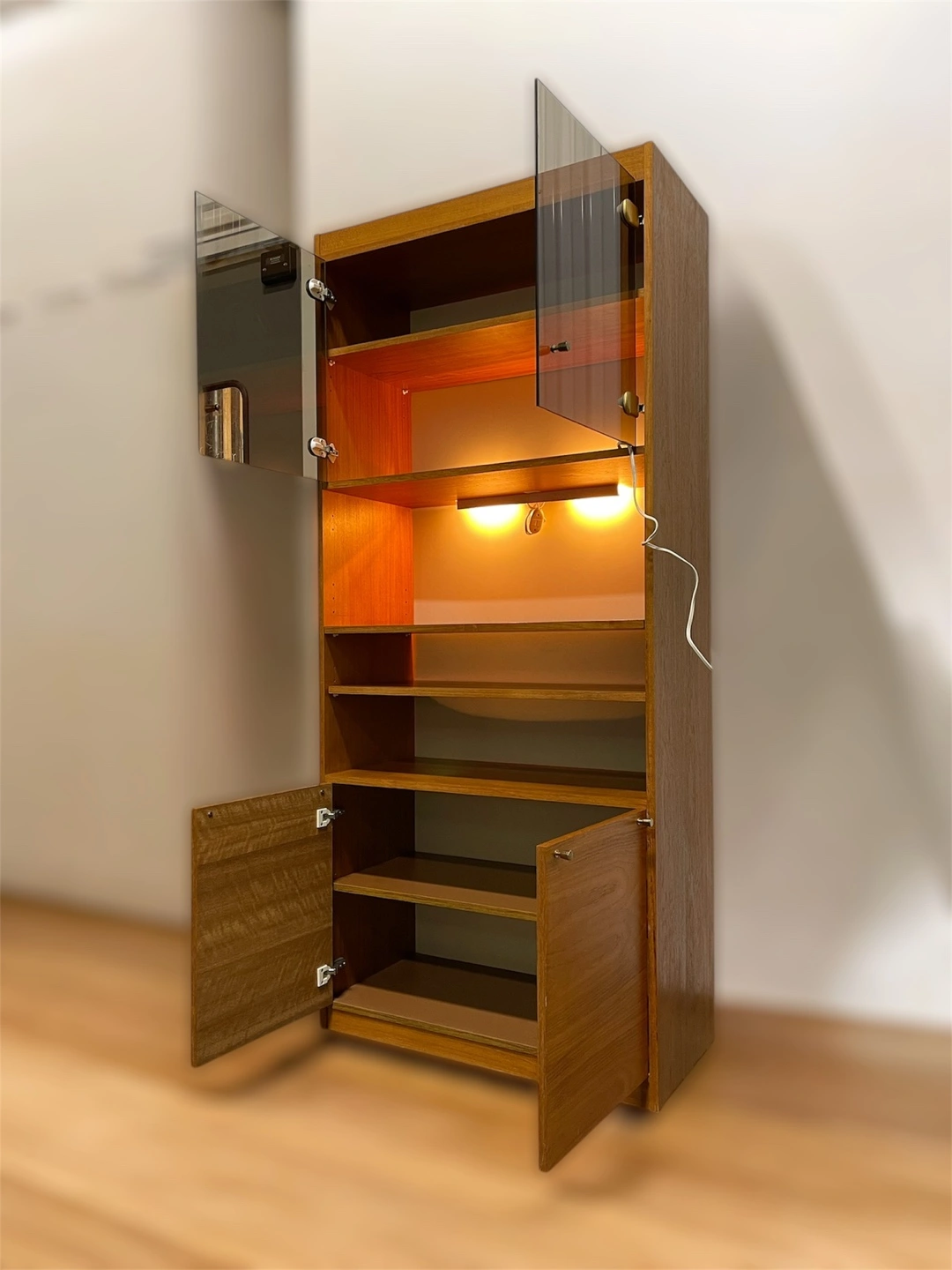 Mid-Century Modern Teak Cabinet with Lighting