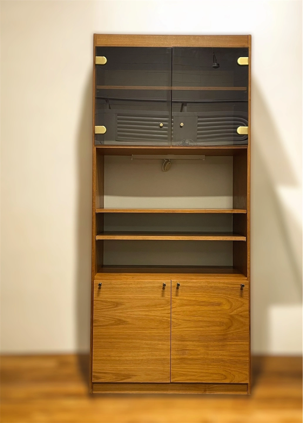 [available] Mid Century Danish Teak Veneer China Cabinet • Bookcase