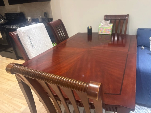 As part of my moving out sale, I'm offering a sectional couch set, a single bed frame, and a dining table with 6 chairs. All items are in used condition but have been well-maintained. Perfect for furnishing a new home without breaking the bank. The condition is used, so please manage your expectations accordingly. Sofa - Carpet in the photo is not for sale. Dining Table - Cushions kept on the chairs are not for sale. Bed - Sheets, blankets, and cushions in the photo are not for sale. You can ask for more photos. Pickup Location: Keswick, Georgia, ON. Contact: +1 437 254 7263. Cash accepted.