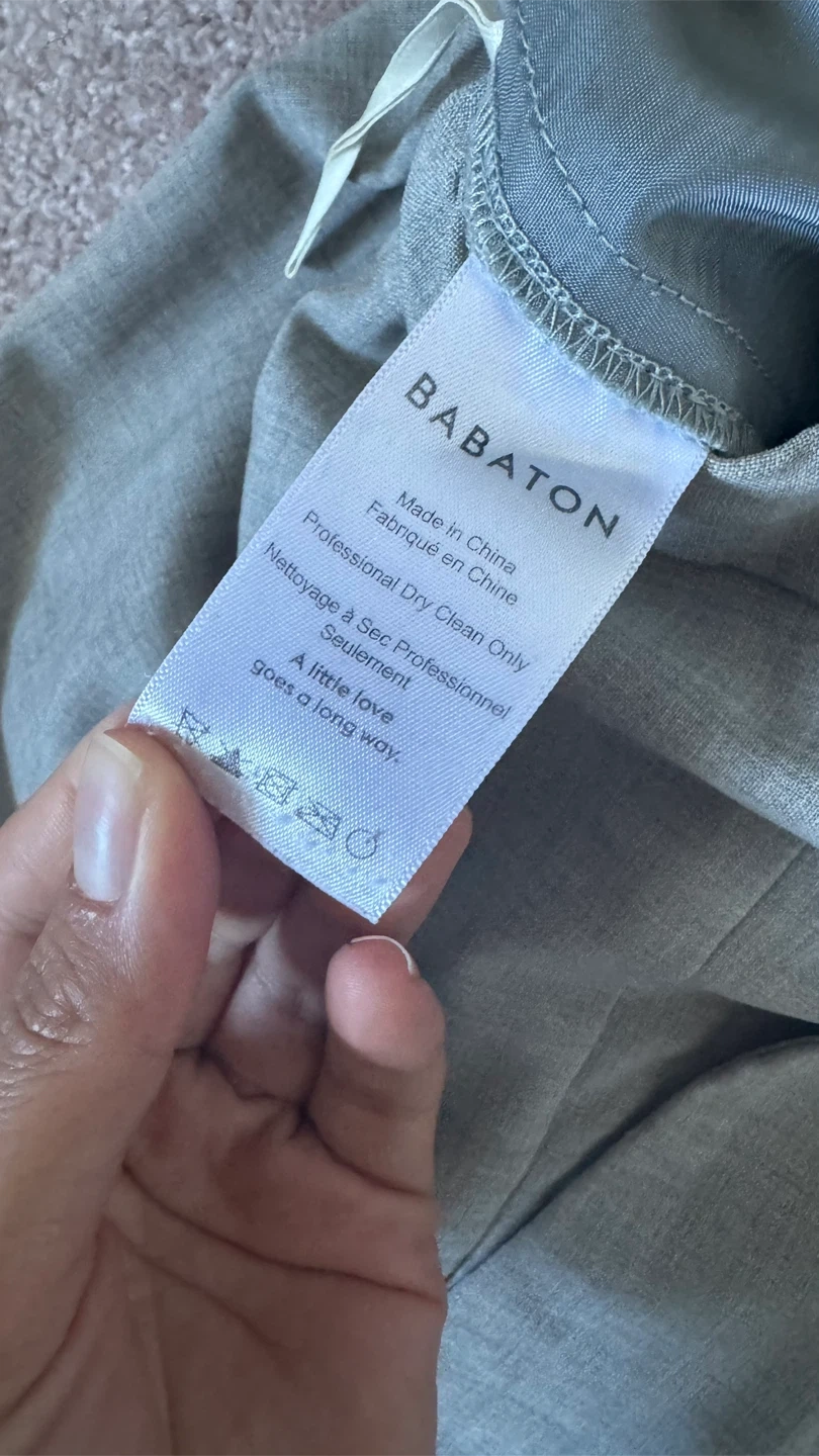 27Selling a pair of grey trousers from Babaton! They're in great condition and ready for a new home. These are perfect for a professional or casual look, depending on how you style them.