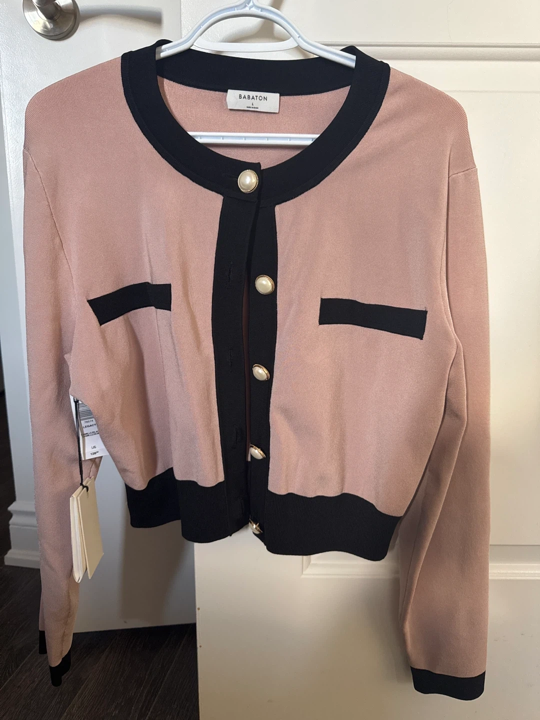 60Selling a Babaton Legacy cardigan in size large. The colour is a lovely camille/black combo. It's in great condition and ready for a new home!