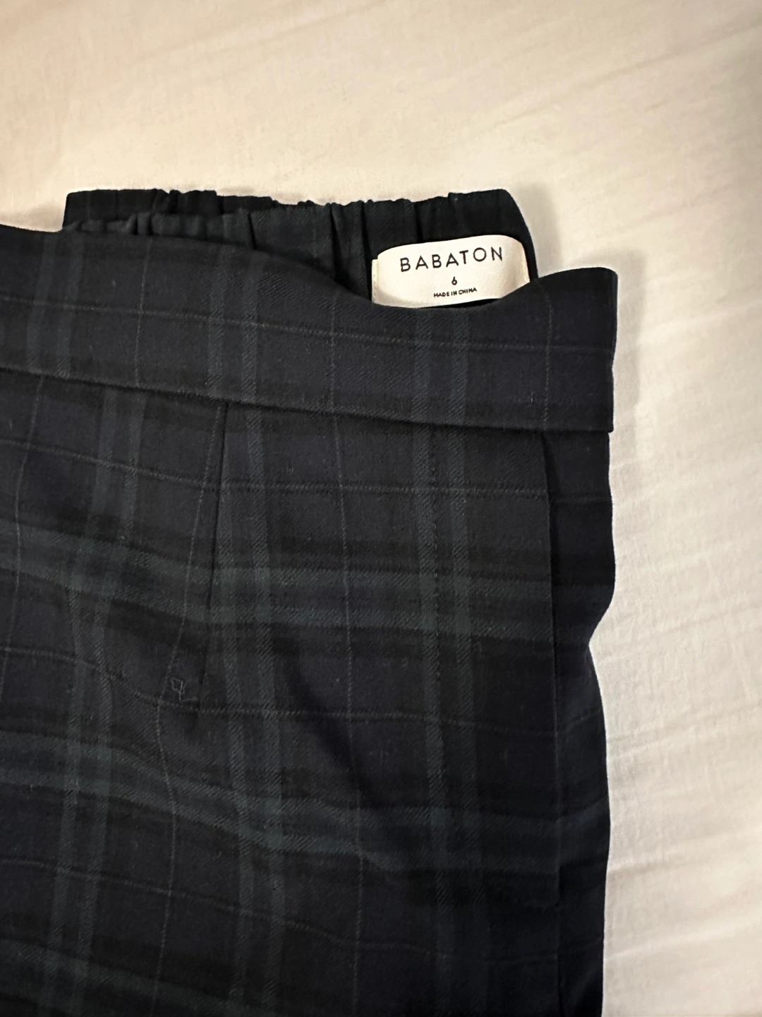 86Selling a pair of Babaton pants in a classic plaid pattern! They are a size 6 and in great condition.