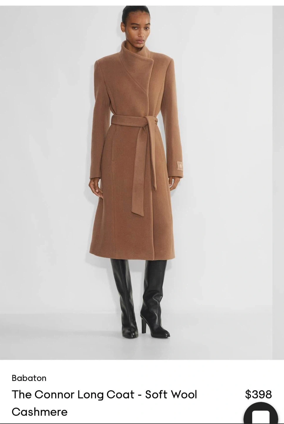 10Looking to pass along this stylish Babaton Connor Long Coat. It's made from soft wool cashmere and has a beautiful, timeless design. Originally bought for $398