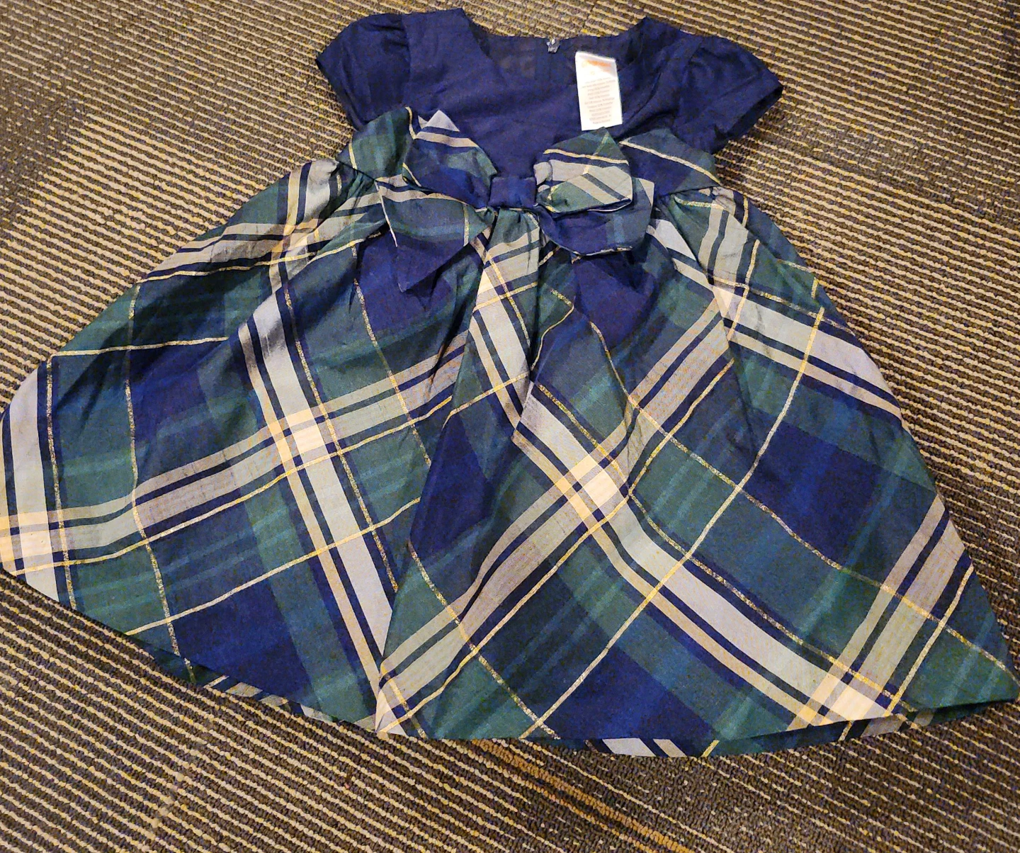37Gymboree green. navy blue and gold stripes.Size 6-12 months only wore for Christmas pictures and chrimas day . Its machine wash. Pet snd smoke free home Like new .condition. Cash only