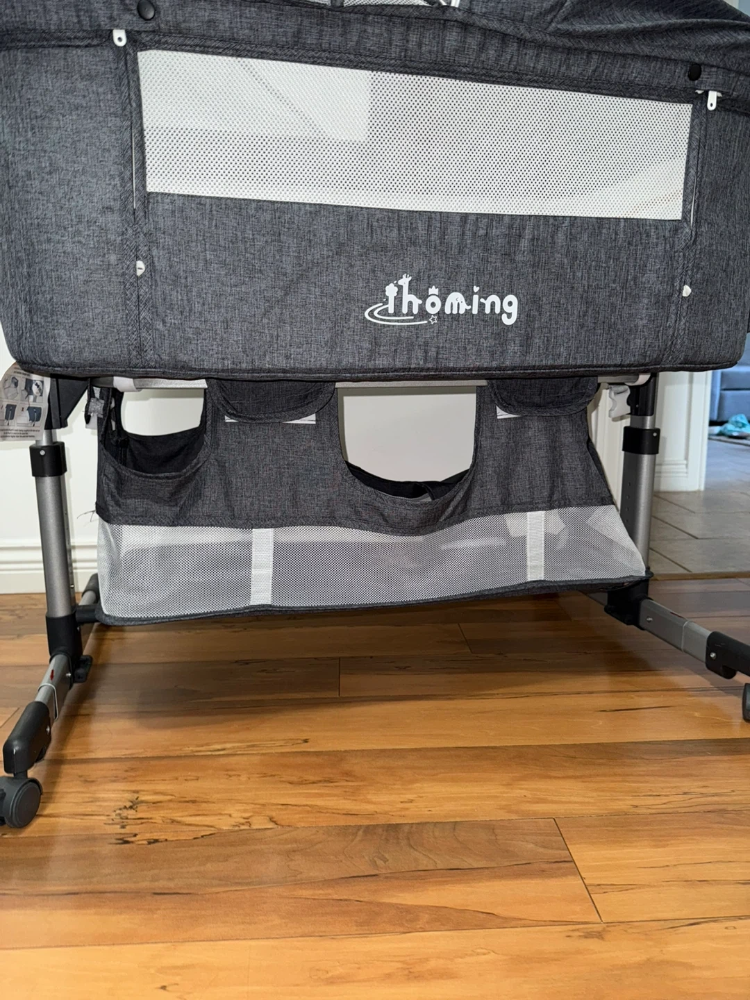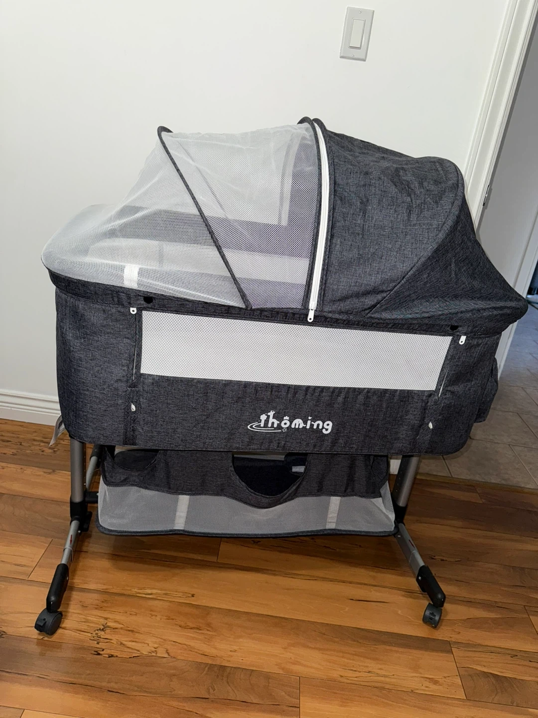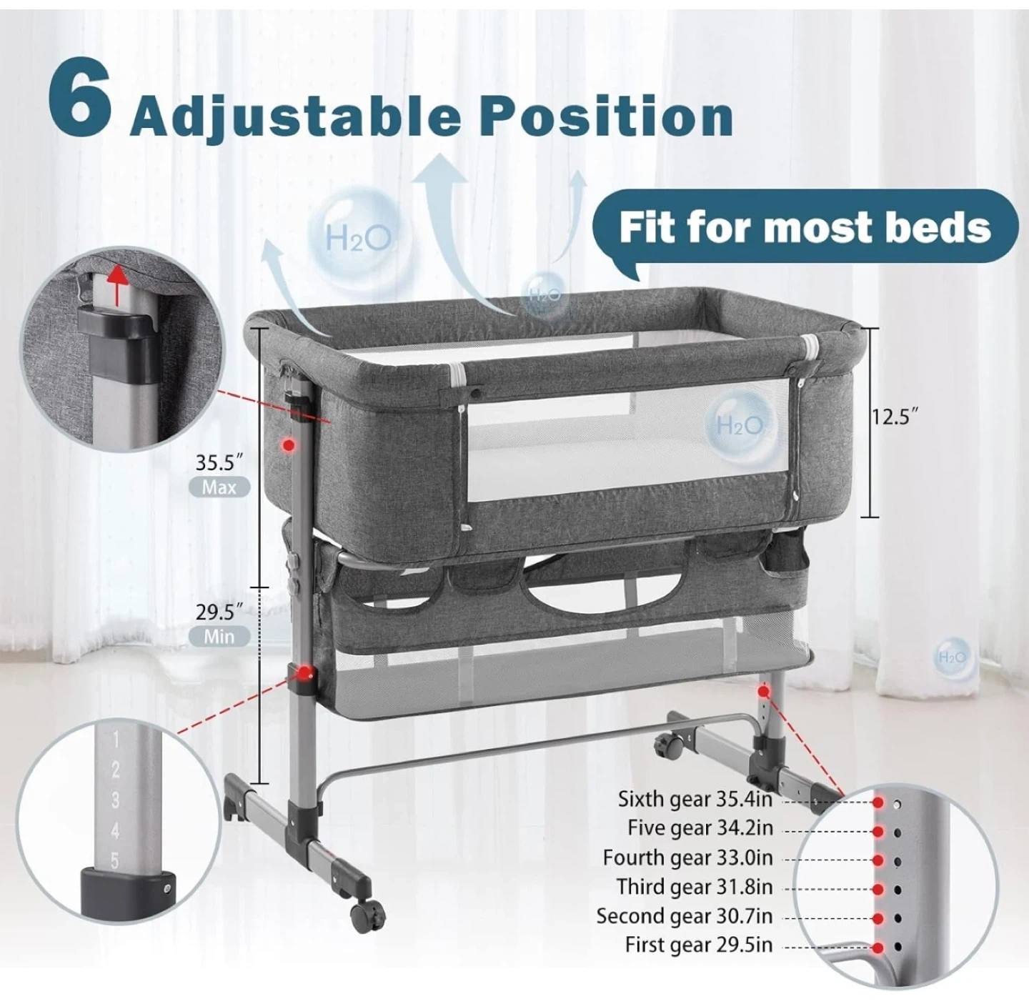 60Ihoming Baby Bassinet Bedside Sleeper, Baby Bed Side Crib with Storage Basket, Easy Folding Bassinets, Adjustable Baby Bed for Infant Newborn, Deep Gray Gifted four fitted sheets for the bassinet mattress✨