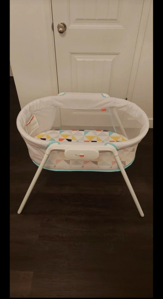 Fisher-Price Stow'n Go Bassinet windmill Barely used Like new Dimension 59.1L x 12.7W x 87.6H Travel Bassinet Comfy and flat surface Easy to assemble and pack Assemble manual included Calming vibrations help soothe baby Carry-on bag included