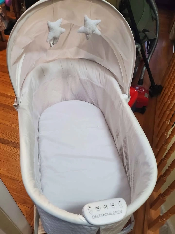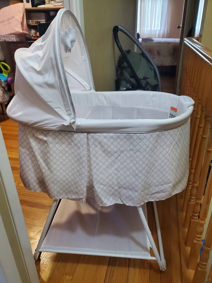 Baby bassinet. Rocks, plays music, vibrates, and there's a light. Used for a couple of weeks in good condition.